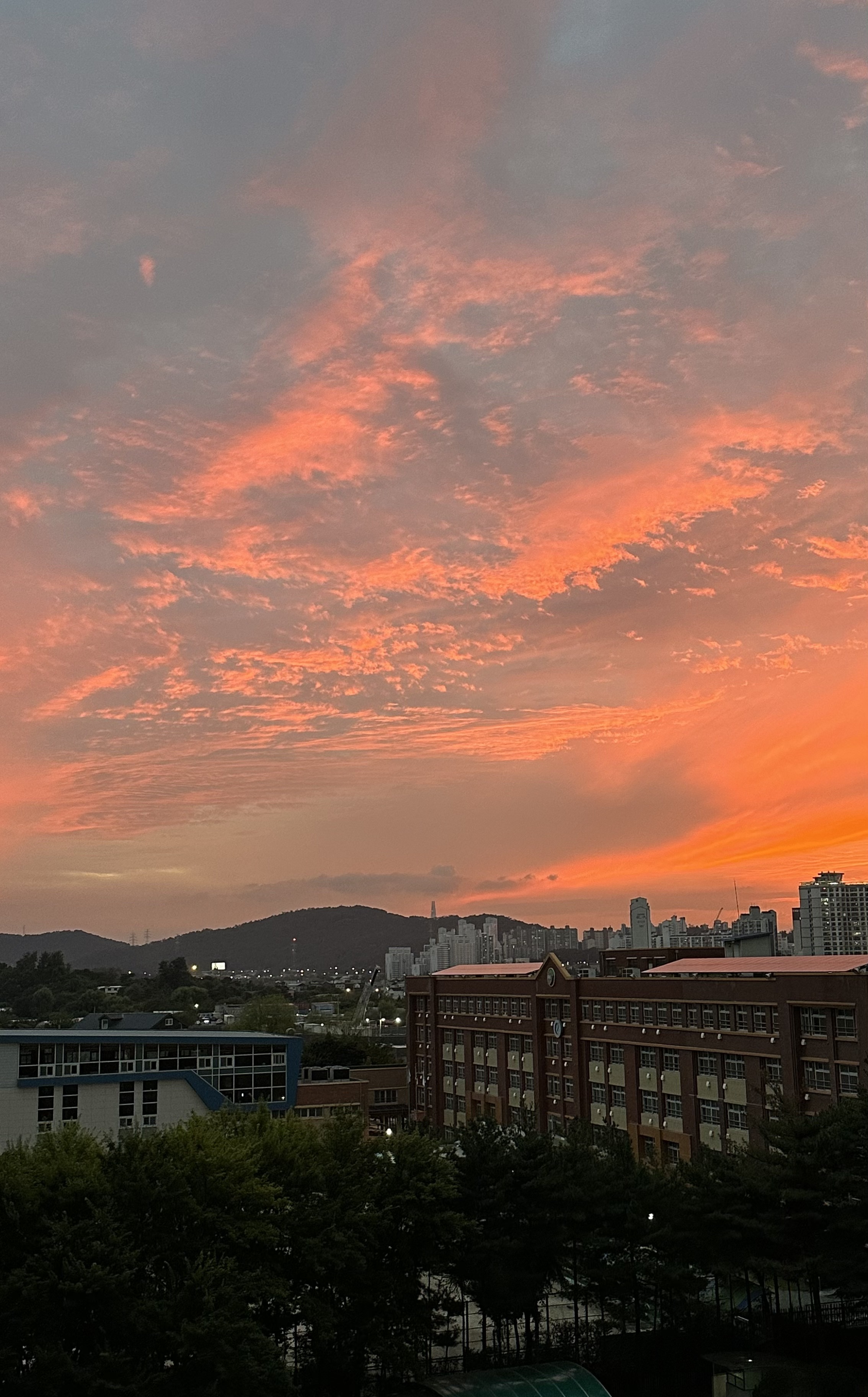 비슷해 보이지만 엄연히 매일 또 매순간 다른 게 저녁놀이다. 심지어 없는 날도 많으니, 이런 붉은 노을을 보여 주는 날은 식구들 모두 놓칠세라 스마트폰을 들고 베란다 좋은 곳을 차지하기 바쁘다. 하늘을 차지하고 어디는 채우고 어디는 비우는 식으로 물들이는 방식이나, 같은 붉은색이 시시각각 이리도 다양하고 다채롭게 표현될 수 있다는 걸 실감나게 보여주기 때문이다.