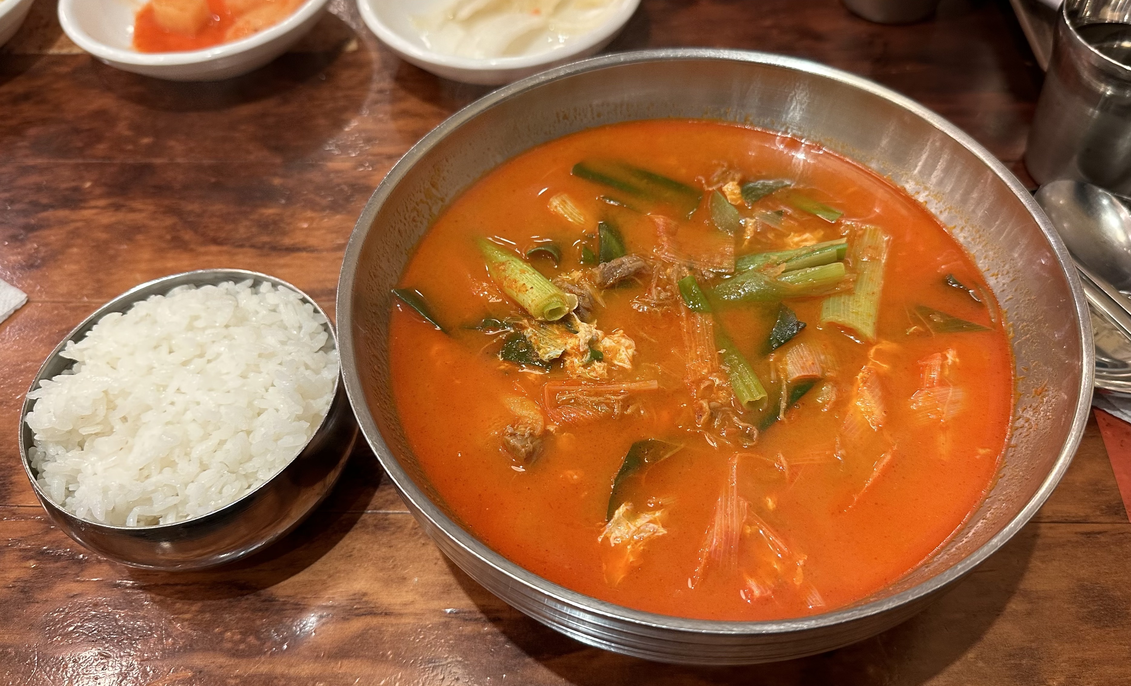 육개장에 버섯이나 순두부를 넣거나 부대찌개 재료를 넣은 육개장도 팔아 구미대로 시킬 수 있고, 밥 대신 칼국수를 넣은 것도 있어 육개장을 베이스로 취향껏 먹을 수 있다는 점도 좋다. 한 그릇 먹으면 땀이 송송 나는 게 한 뚝배기 한 기분이다.