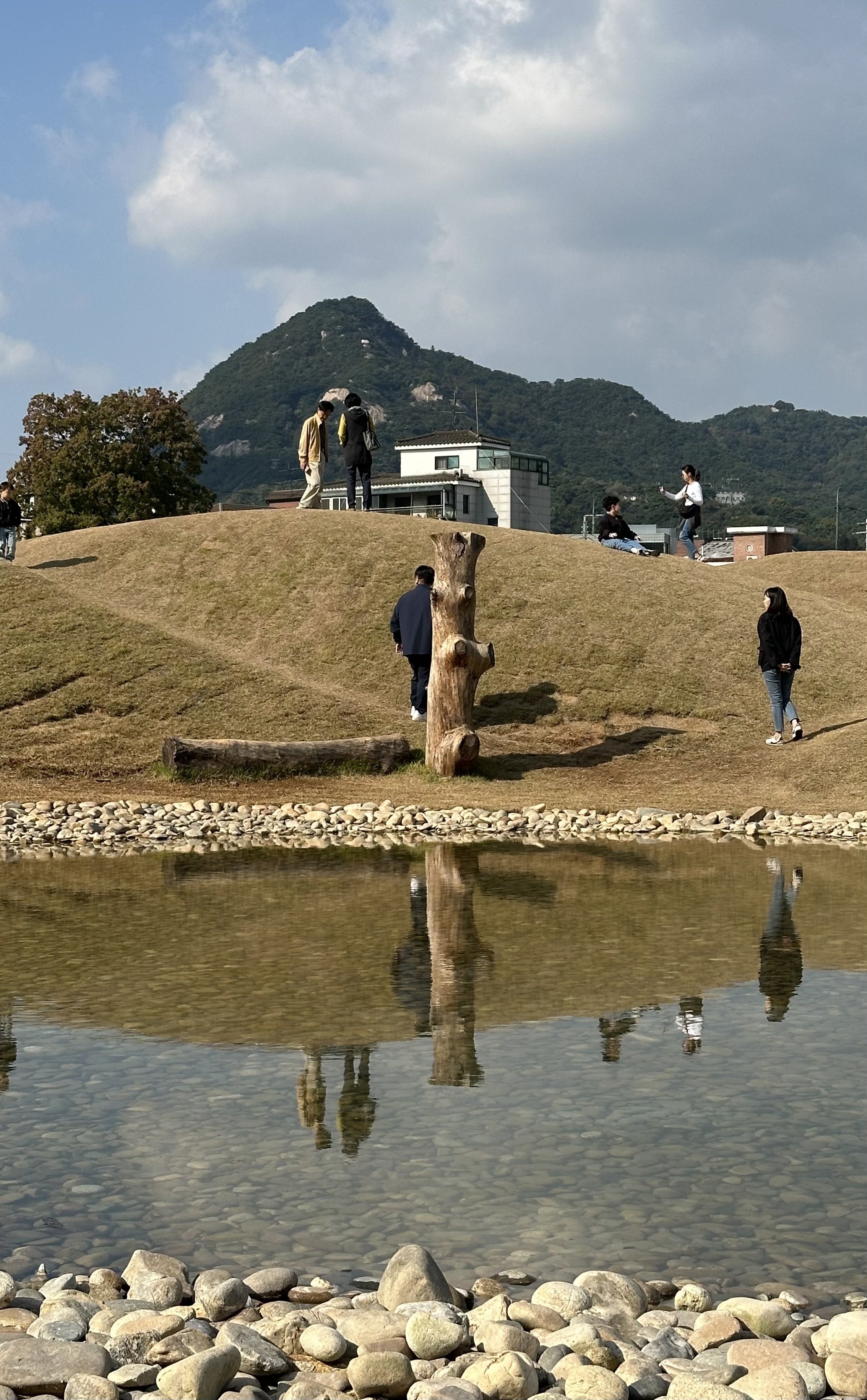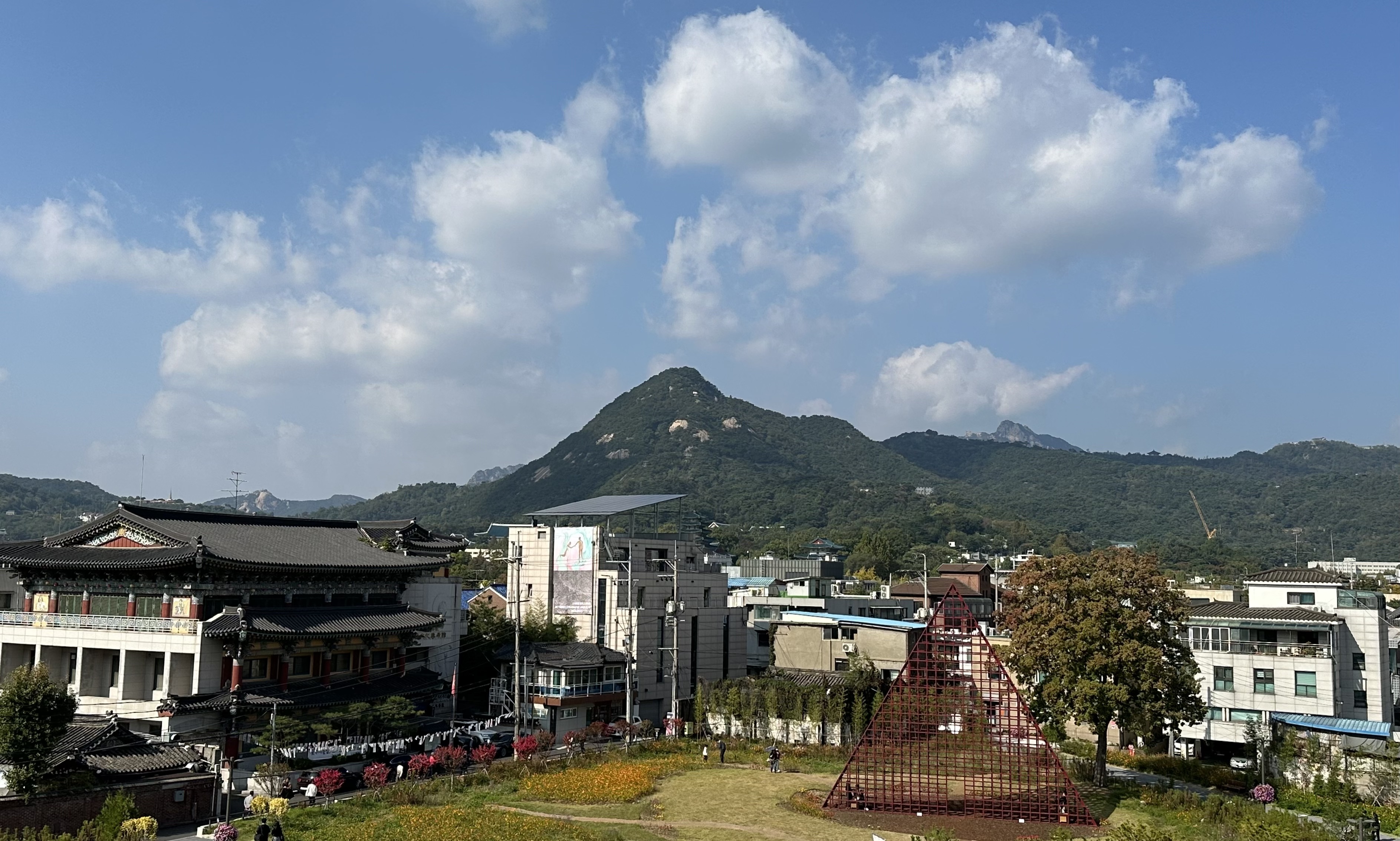 주일예배를 마치고 점심 먹고 바로 집에 가기엔 날씨가 너무 좋아 지난 초여름에 찾찼던 경복궁 옆 열린 송현(6/6/23)을 아내와 함께 걸었다. 미군 시설이 있던 자리에 호텔 건립을 하려다가 문화재위원회의 반대로 시민들에게 열린 공간이 되었다. 전망대에 올라 북악산을 바라보니 북한산도 살짝 보였다.