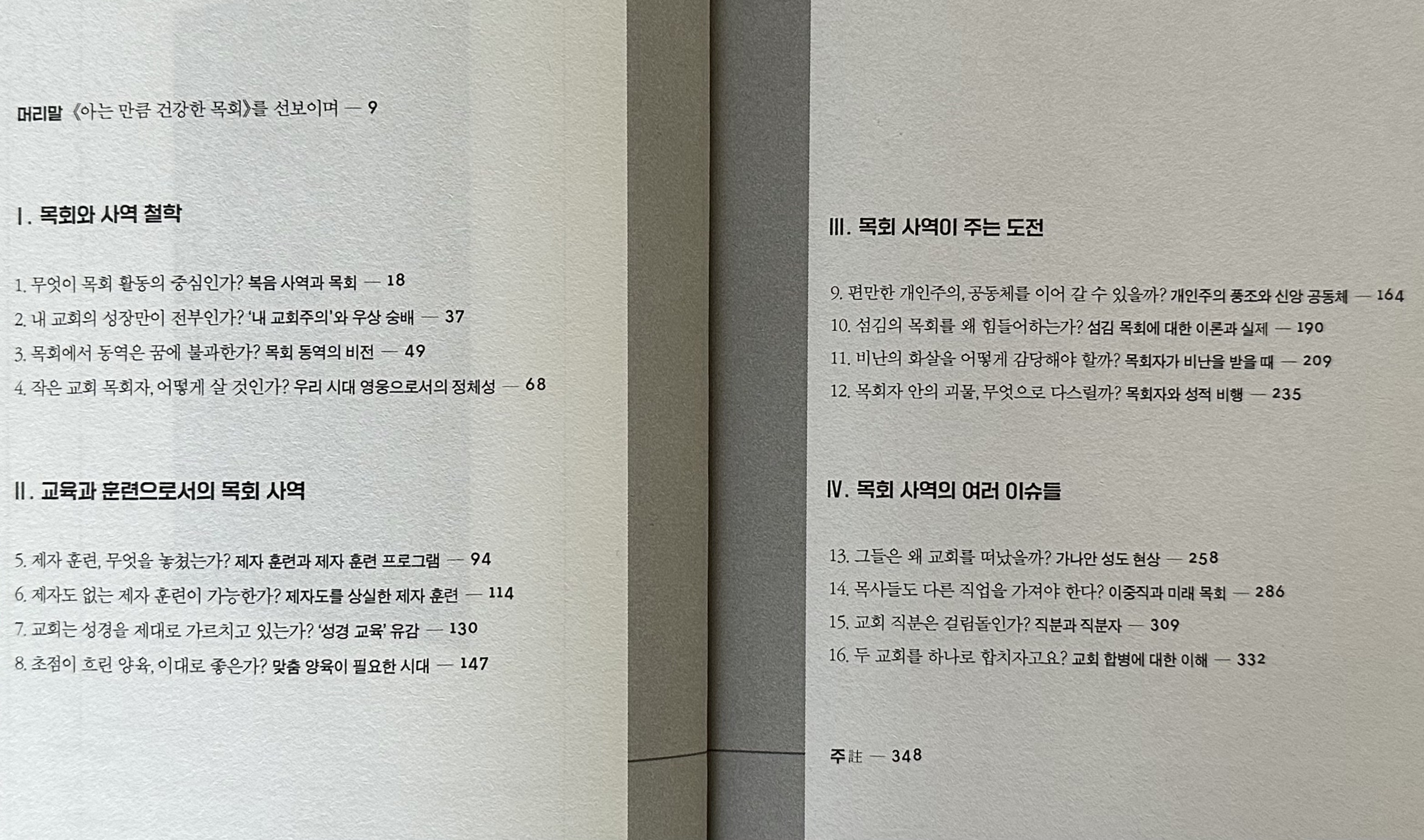 신학을 공부한 것도, 목회를 하는 목회자도 아니면서 목회자 못지 않게 이런 책이 반갑다. 다루는 이슈 하나하나가 목회자 자신은 물론 교회와 신도들의 건강을 좌우하기 때문이다. 아닌 말로, 웬만한 교회나 성도들은 목회자를 제대로 만나느냐 그렇지 않느냐에 따라 신앙생활에 적잖은 영향을 받는 게 현실이기 때문이다.