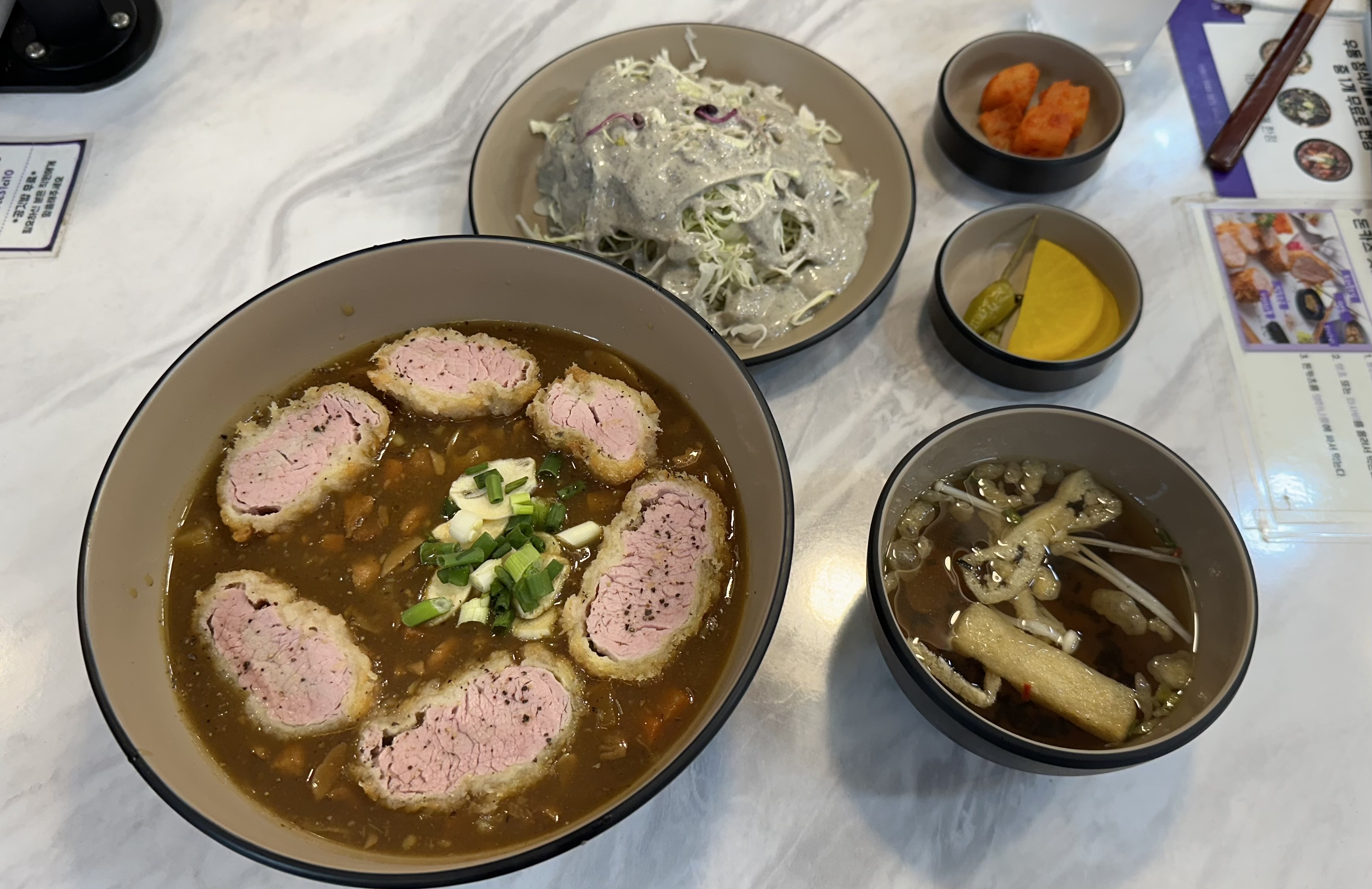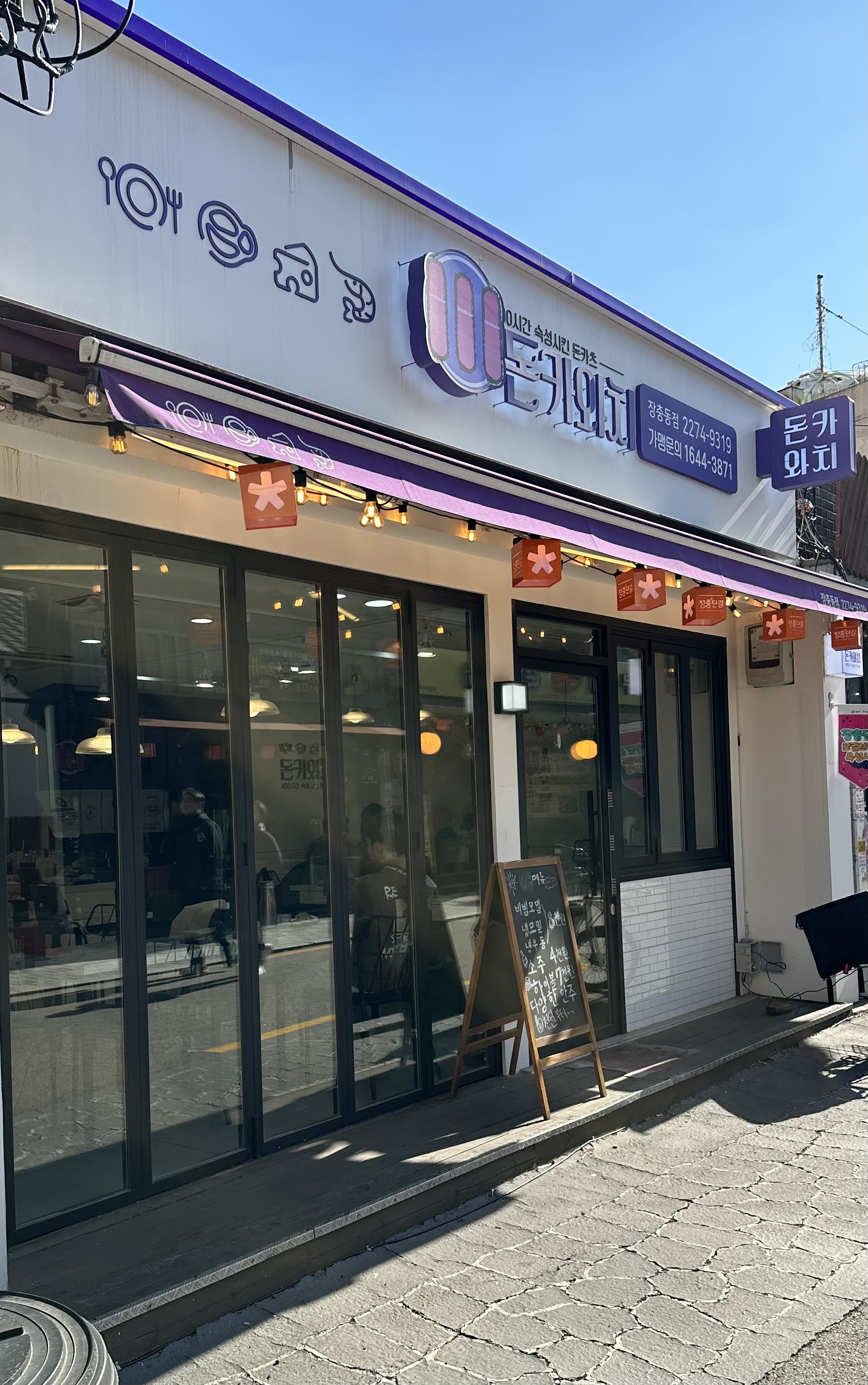 중국집에서 짜장과 짬뽕처럼 카레와 돈가스 둘 다 먹고 싶어지기 때문인데, 메뉴에 보이면 망설이지 않고 카레돈가스를 시키는 편이다. 동대가 가까운 장충동 먹자골목에 돈키와치란 돈가스 집이 보이길래 들어가서 키오스크에 보이는 메뉴를 한참 고민하다가 결국^^ 이번에도 카레돈가스를 시키고 키오스크로 결제까지 마쳤다.