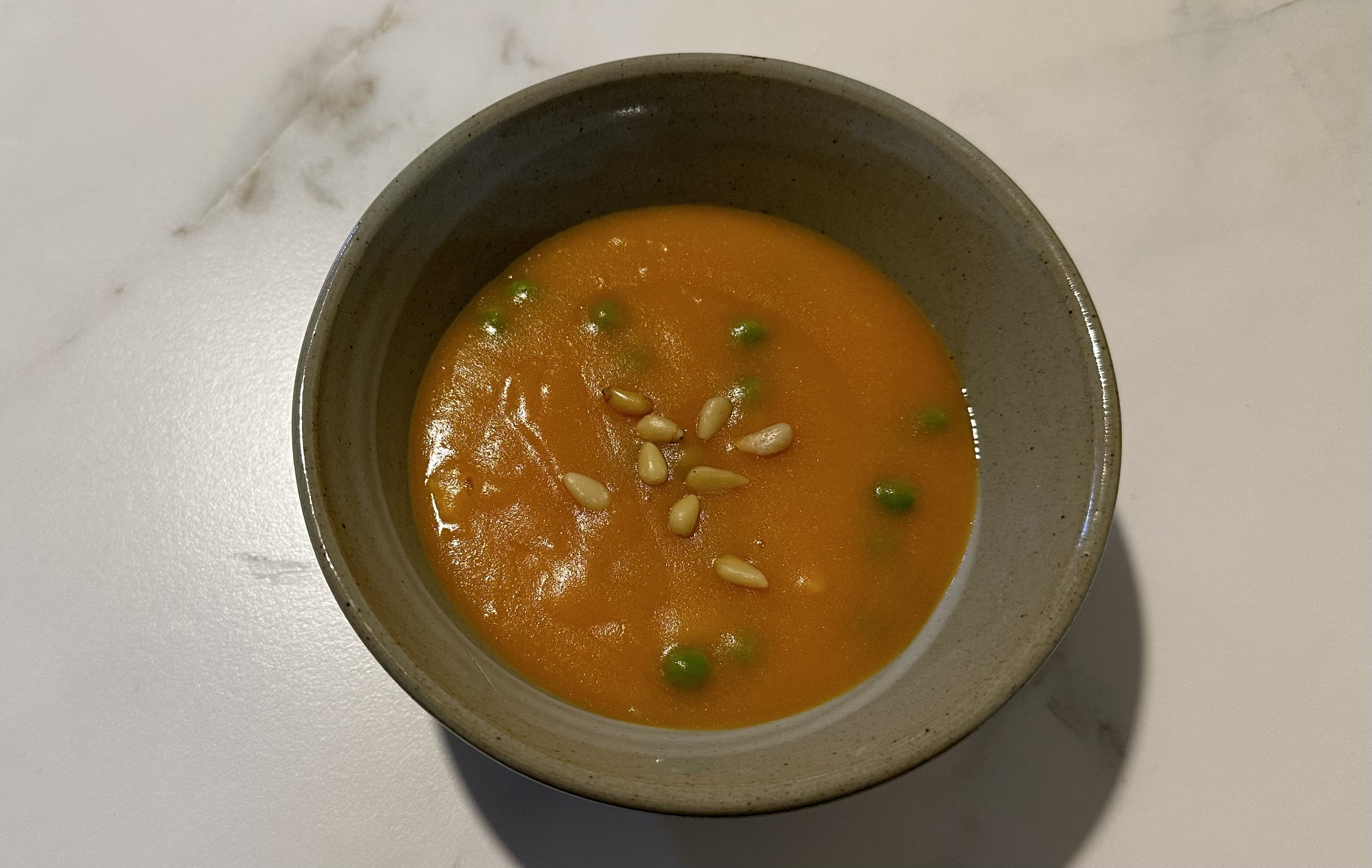 위에다 완두콩과 잣을 얹었는데, 잣은 OK, 완두콩은 모양은 나지만 맛에 도움을 주진 못했다. 그래도 액체만 넘기지 않고 작게나마 씹히는 게 있어서 나쁘지 않았다. 한 그릇 더 먹을 수도 있었지만, 타박하던 죽에 대한 변심을 들킬 것 같아 사양했다.^^