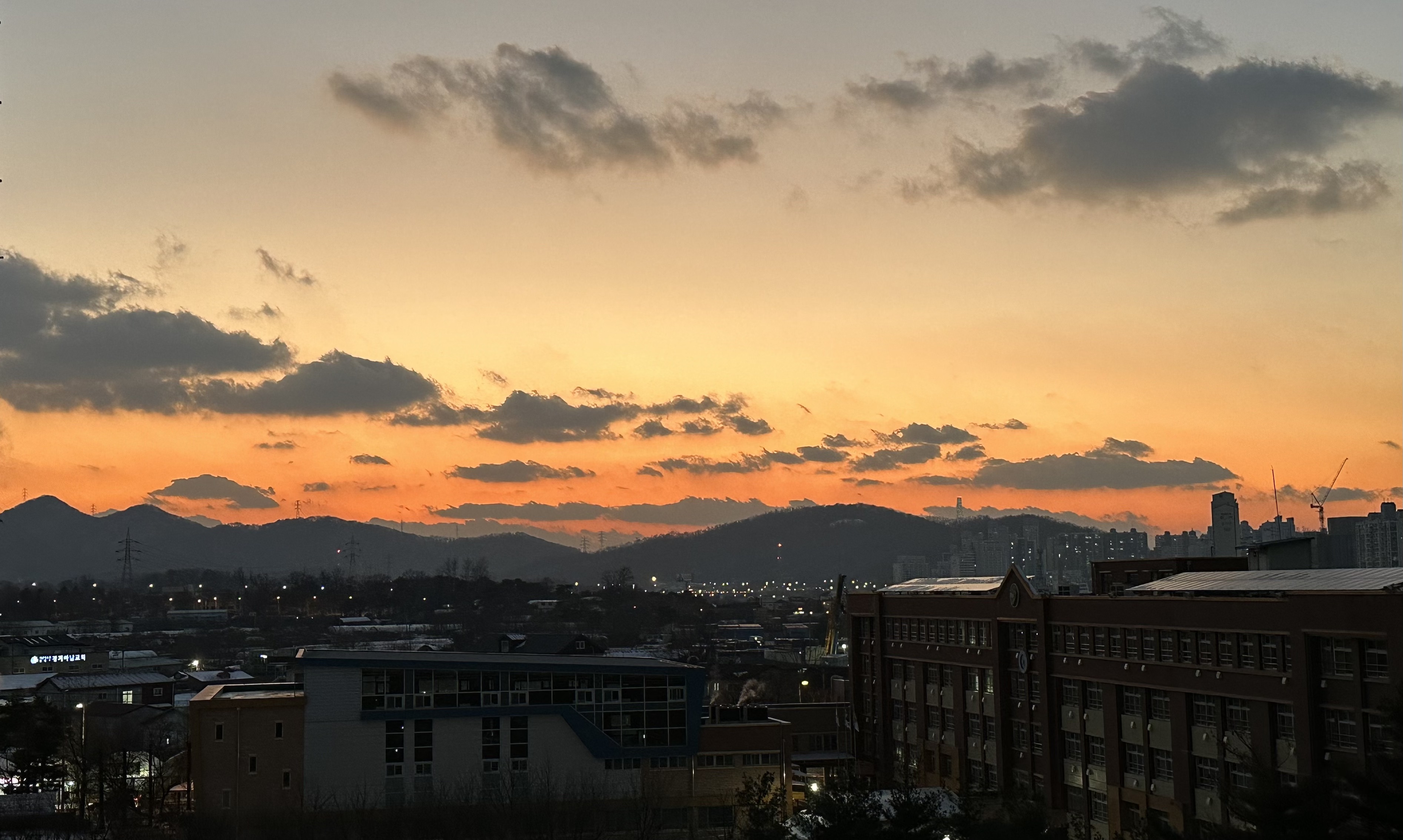또 한 해를 보내고 내일이면 새로운 해가 시작된다. 잠실 롯데에 갔을 때, 어느 스토어 벽면에 2023에서 2024로 넘어가면서 스트레스 테스트와 푸는 체조를 제안하고 있었다. 자기네 운동복을 입고 스트레스를 날려 버리라는 거겠지만, 한 해의 끝과 시작을 이렇게 할 수도 있겠구나 싶었다. 석양이 좋은 우리집에선 거의 매일 같이 해넘이가 장관이다.