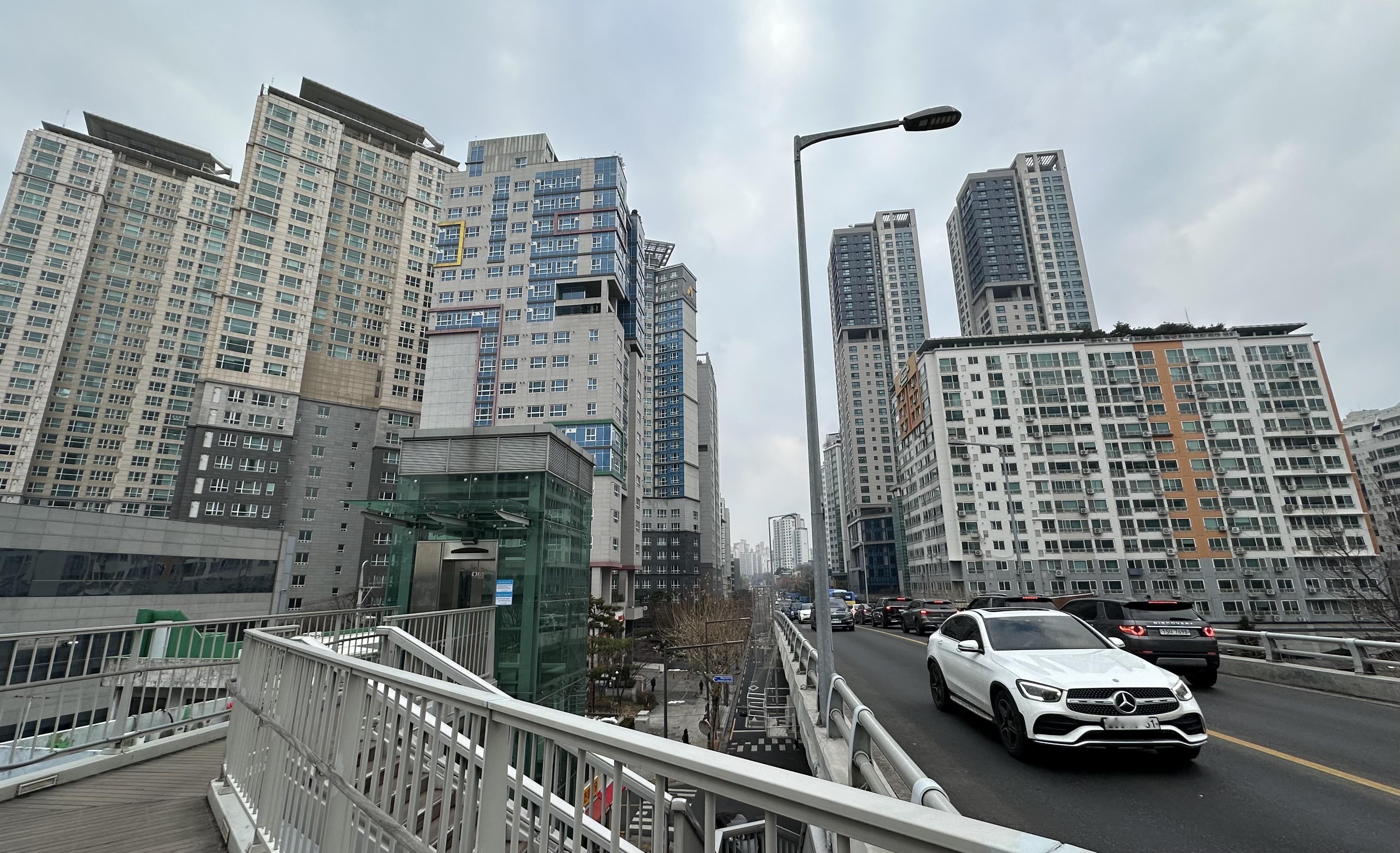 지도를 따라가다 보니, 주위가 너무 바뀌어 어디가 어딘지 가늠이 안 됐다. 길을 건너려면 길가에 있는 엘리베이터를 타고 고가도로에 올라가 다시 엘리베이터를 타고 내려가야 하는 동네라니, 제대로 가고 있는 건지 잠시 어리둥절했다. 고가도로에 오르니 온통 초고층 건물들이다. 상전벽해(桑田碧海)가 따로 없었다.