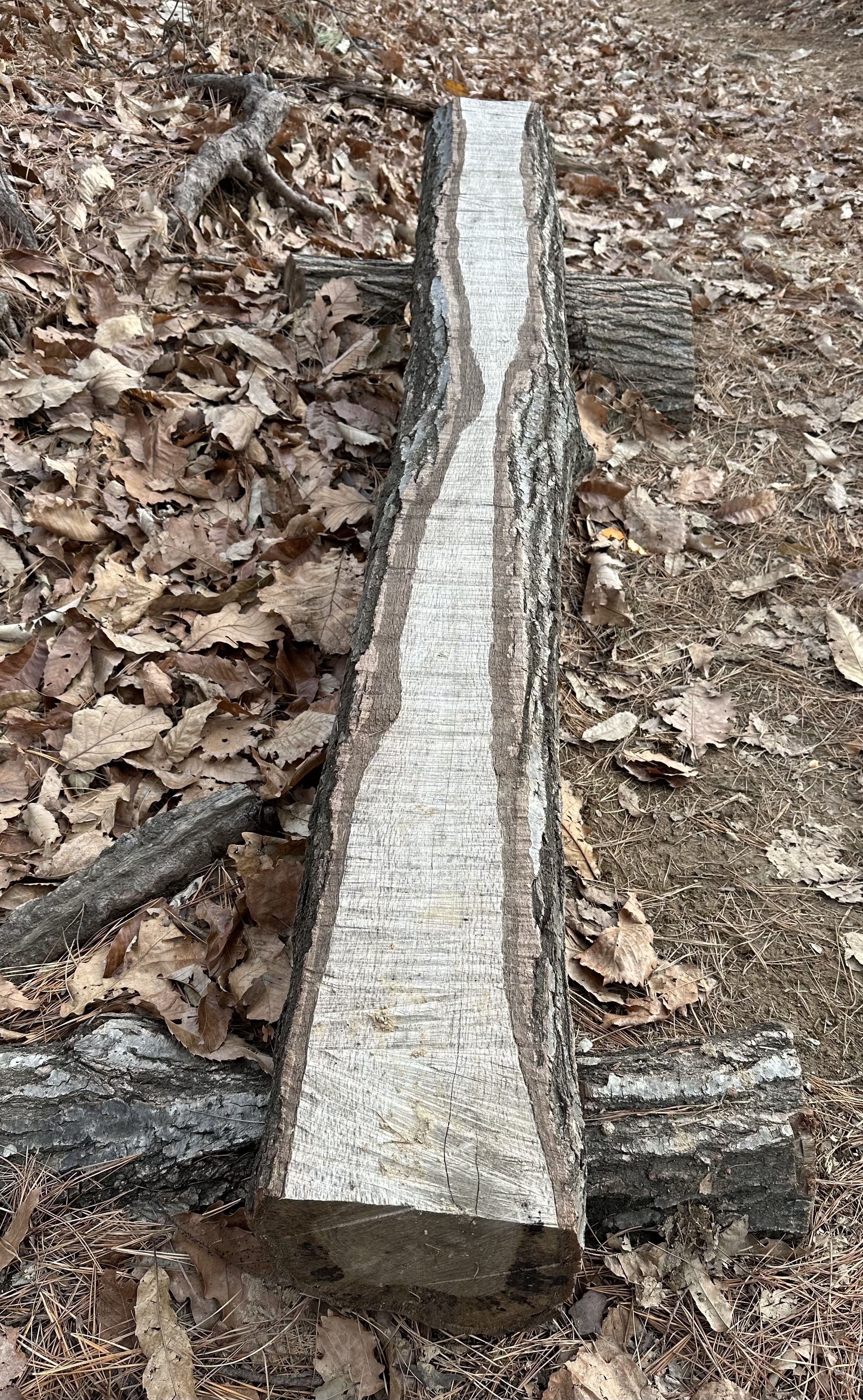 두 개가 같은 나무였는지는 알 수 없지만, 단면 모양새가 반듯하고, 수피 안쪽 나이테를 이루는 부분이 단조롭지 않은 게 볼만 했다. 산에 서서 자랄 땐 주위 나무들과 잘 어울리다가 이렇게 베어진 이후엔 또 산길 한 귀퉁이에 누워 오르내리는 등산객들의 벗이 되고 있으니, 외롭지만은 않겠다 싶었다.