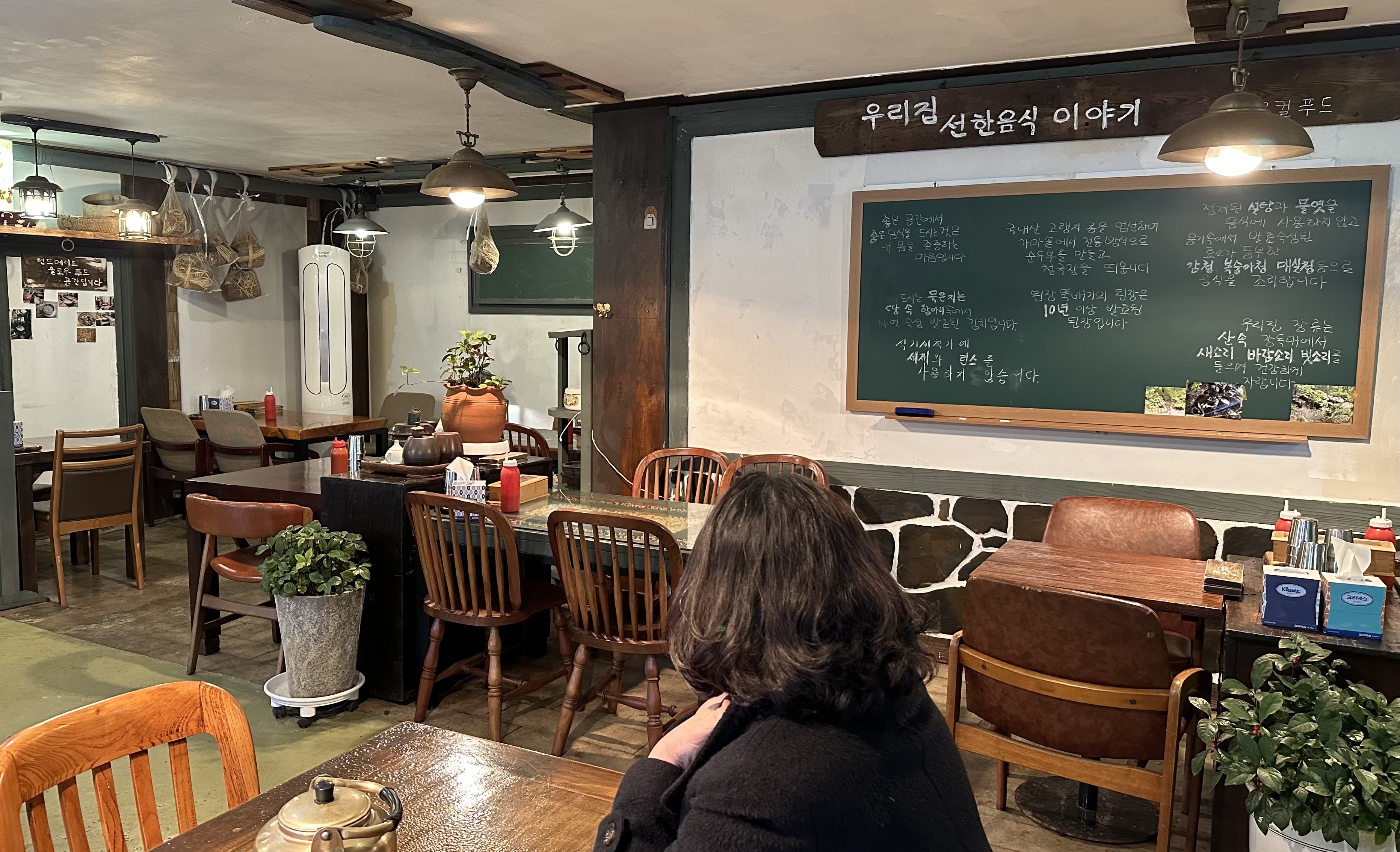JPss네랑 만날 땐 분당에 있는 두부집을 종종 간다. 나물비빔밥이 나오는 순두부나 청국장, 한여름엔 진한 콩국수가 맛있는 집이다. 음식도 음식이지만, 이 식당은 음식 철학을 적어 놓은 칠판이며, 장작을 때는 난로에 메주를 걸어놓은 것까지 분당답지 않게 제법 옛날 분위기가 나서 앉으면 마음이 편해지고 입이 즐거워지는 맛집이다.