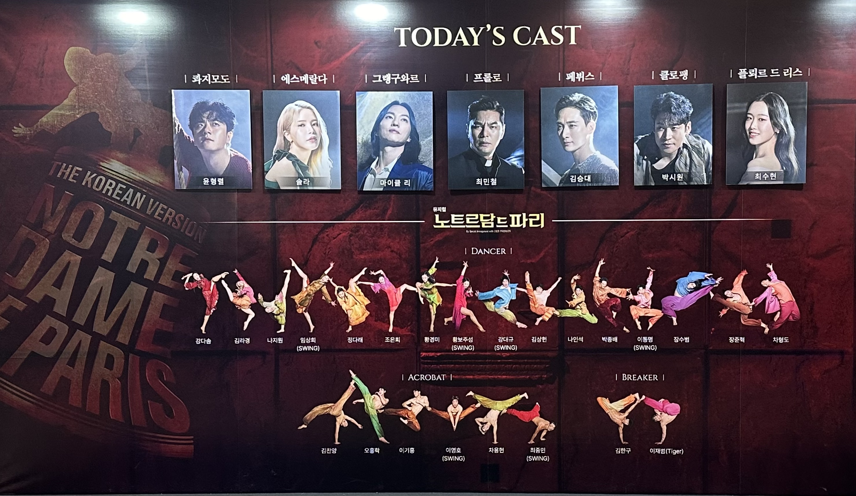<노틀담 드 파리>는 전에도 본 적 있고, CD로도 자주 들어 스토리와 노래가 익숙한지라 편하게 감상할 수 있었다. 예전에 오리지널 팀이 와서 갈라 콘서트(5/29/13)를 한 적이 있는데, 불어 특유의 비음 같은 게 듣기 좋았던 기억이 났다.