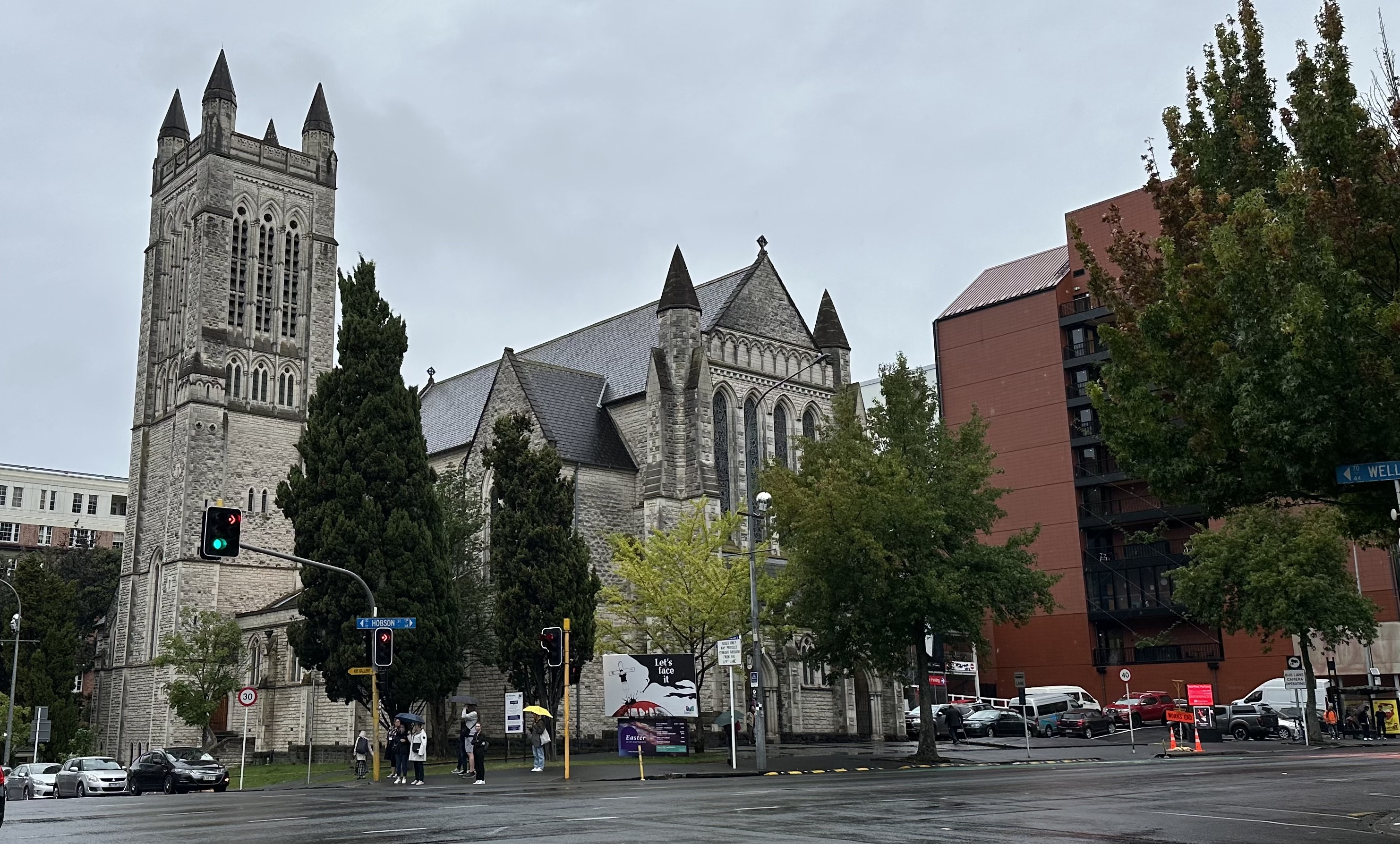 남섬 여행을 먼저 꺼내놓느라 북섬 이야기는 아직 개봉 전인데, 뉴질랜드에 도착한 날(3. 15) 오클랜드 시내 스카이 타워 아래를 걷다가 건너편에 보이는 교회당 앞에 세워놓은 입간판이 보였다. 영국 성공회 성 마태교회당인데, 시내 한복판에 있는 걸로 봐서 우리로 치면 영락교회나 새문안교회쯤 되어 보였다.