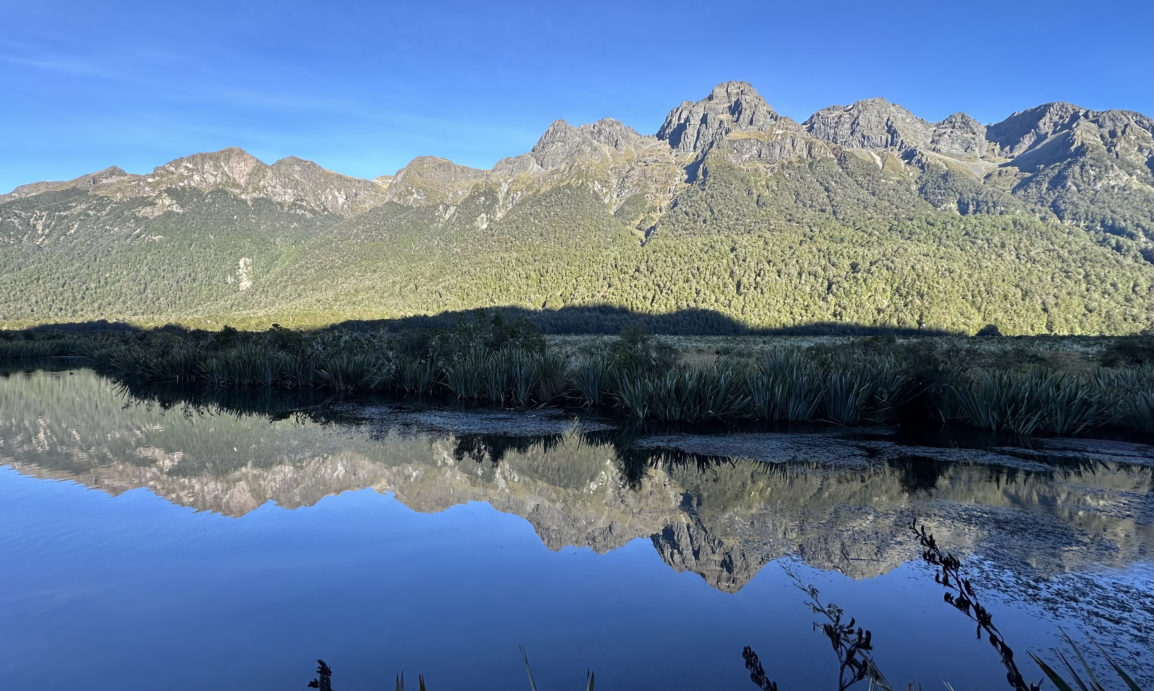폴이 일러준 대로 Eglinton Valley와 Mirror Lake에 서서 바라보는 풍경은 우리의 시선을 빼앗고 환성을 지르게 하기에 충분했는데, 정말 남섬은 무엇을 상상하든 그 이상으로 맞아 주었다. 초가을 오전의 풍경이 이러한데, 다른 계절의 다른 시간들에는 또 어떤 변신을 하고 있을지 기대하게 만들었다.