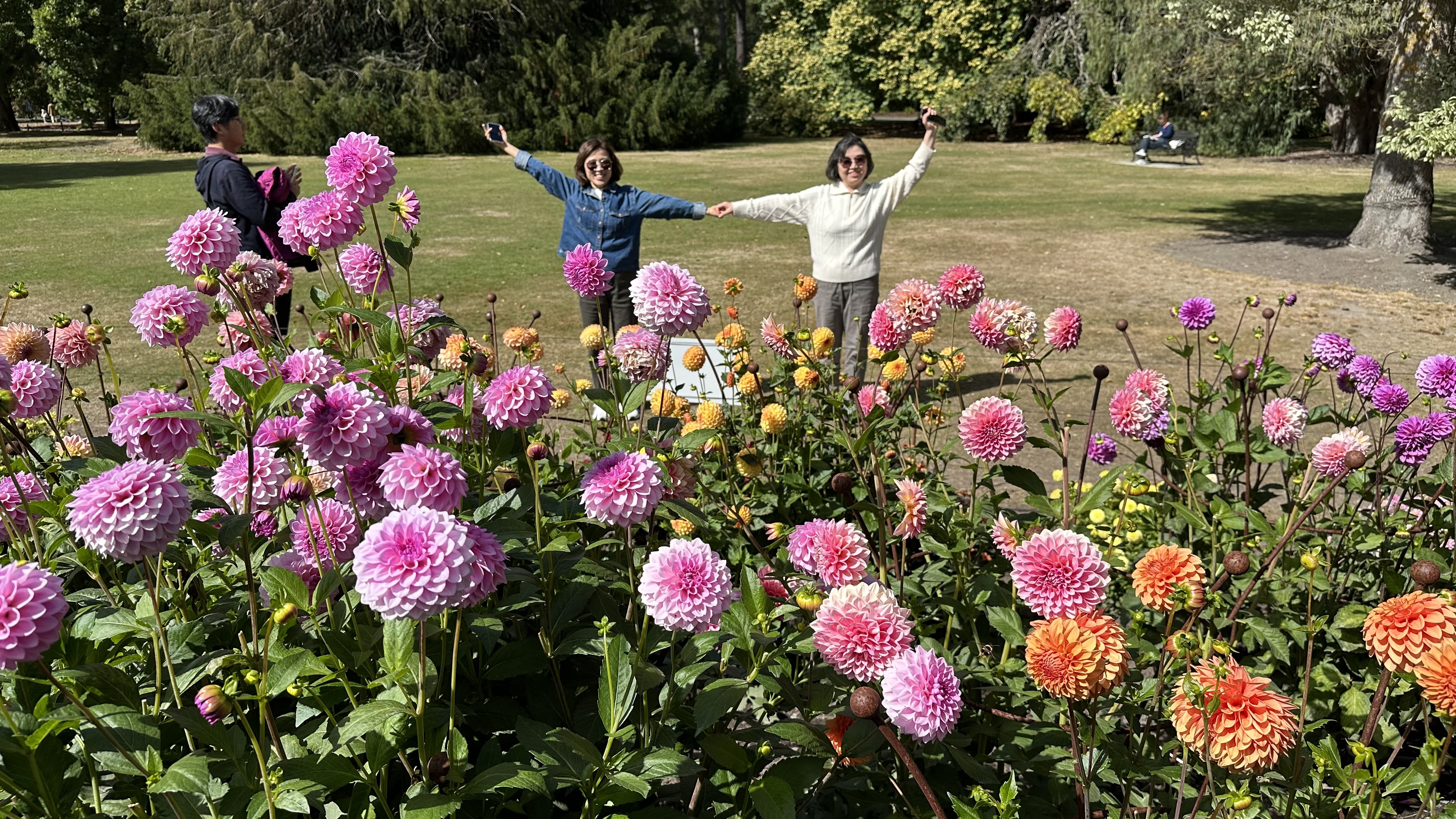온실을 나오니 야외에 다알리아들이 만발해 있었다. 꽃은 사람의 마음만 아니라 몸도 움직이게 만드는듯, 포즈를 취하게 한다. 다른 관람객들 가운데는 우열을 가리려는 겐지 꽃 배경으로 보정하려는 겐지 꽃들 사이에 얼굴을 넣는 이도 보였는데, 여행의 출발점으론 더할나위 없는 식물원이었다.