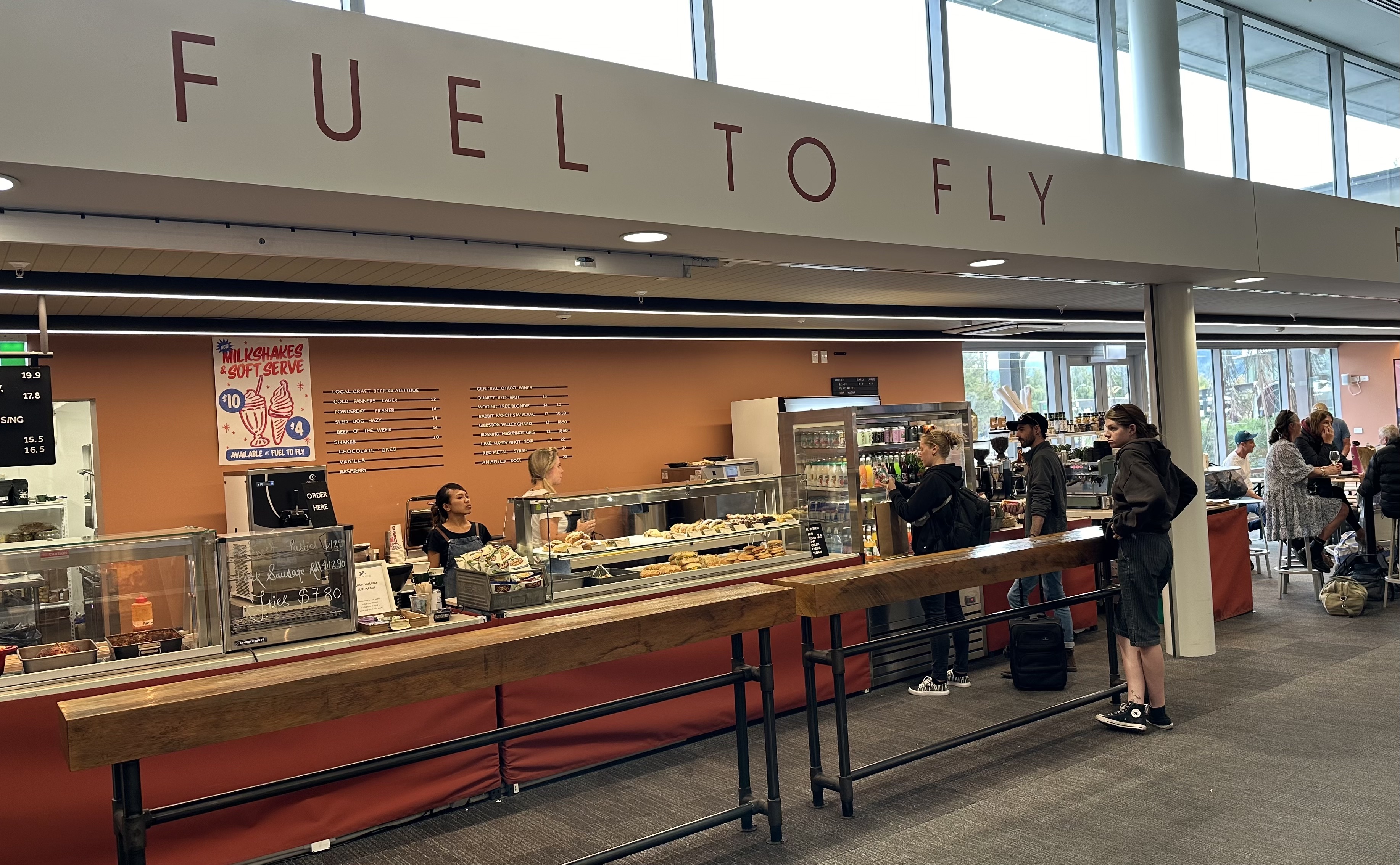 3월 하순 남섬 여행을 마치고 퀸즈타운 공항에서 북섬 오클랜드 공항 가는 국내선 JetStar 탑승 시간을 기다리는데, 한쪽에 스낵과 커피를 파는 가게가 보였다. 비행기가 날아가는 데 꼭 필요한 연료를 채우라는듯 커피 한 잔 하고 가라는 가게 이름이 미소를 짓게 만들었다. 정말 커피를 넣으면 비행기가 나는 걸까?^^