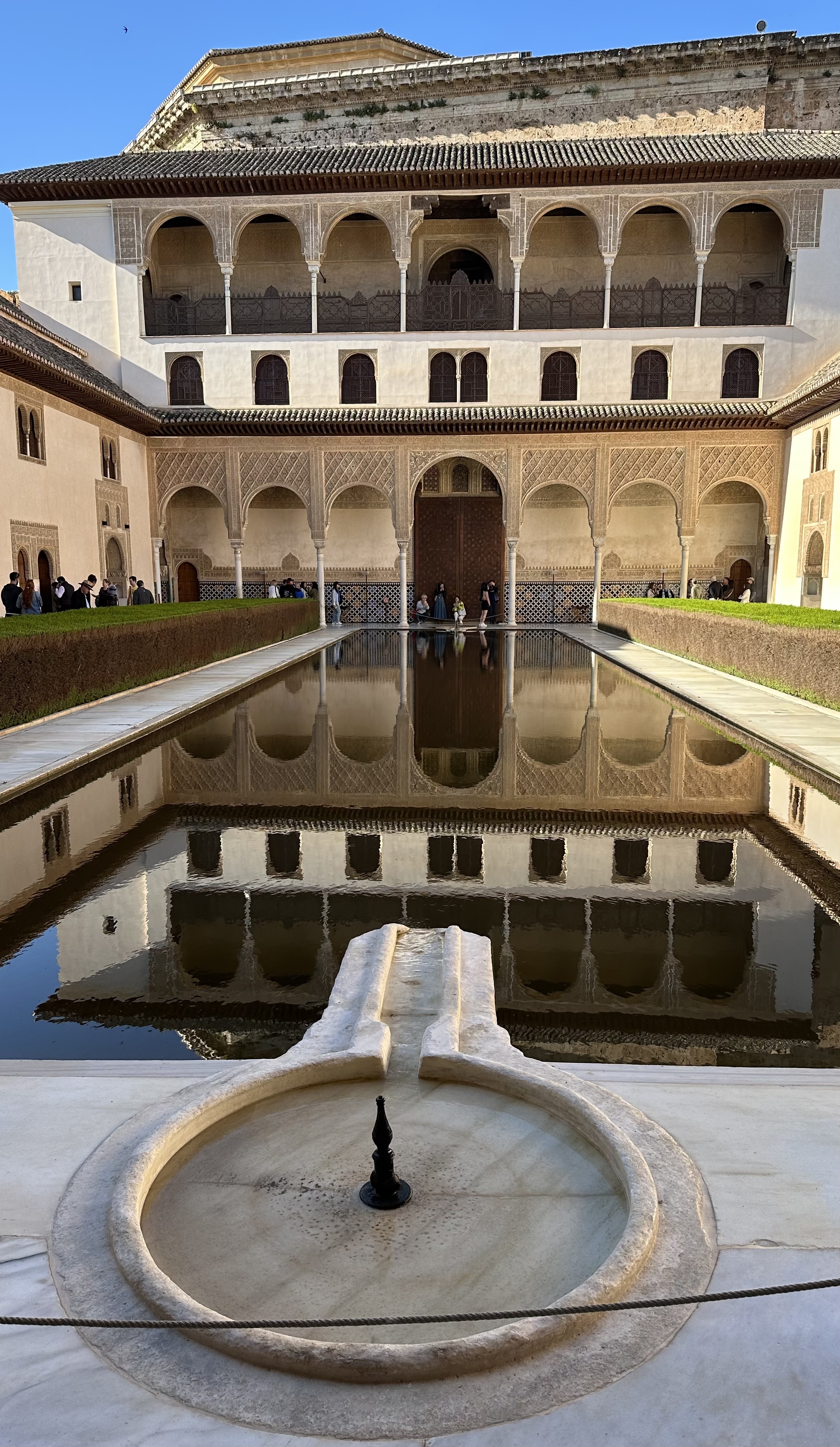 궁전 옆엔 헤네랄리페 정원이 있는데, 장미가 많이 피어 원없이 볼 수 있었다. 키 큰 사이프러스 나무들도 조경을 잘해 놓았는데, 알함브라에서 가장 인상적인 공간으로 다가왔다. 관광객, 여행객, 소풍 온 학생들이 꼬리에 꼬리를 물고 이어졌는데, 역사와 함께 사람 구경도 재미 있었다.