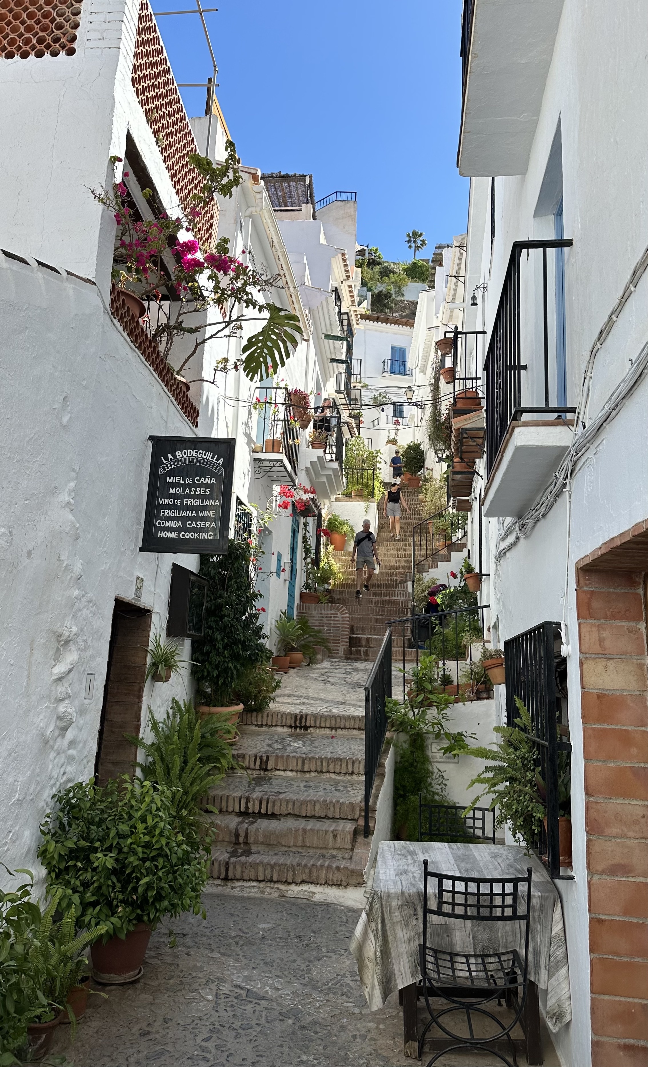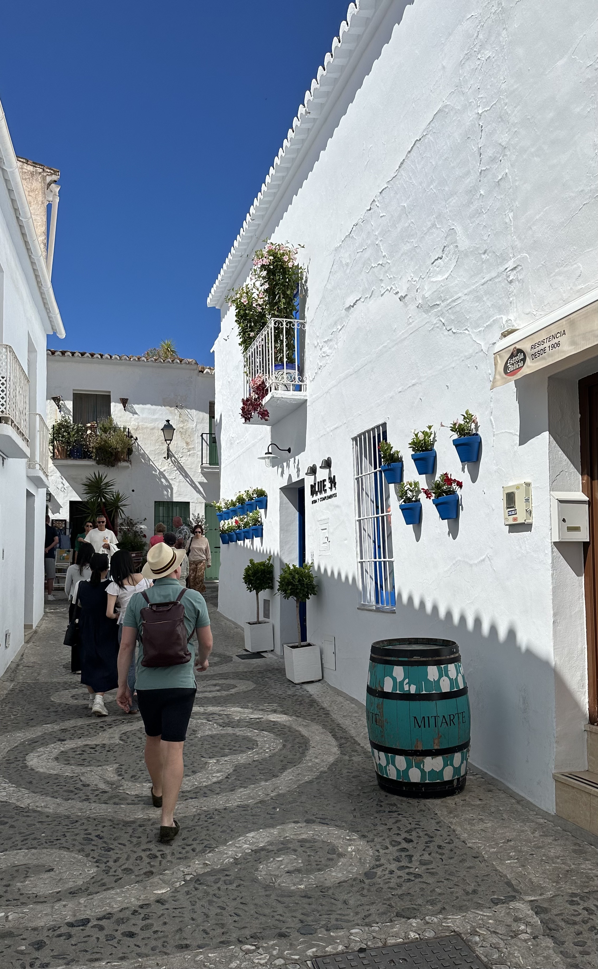 스페인 여행의 전반부(바르셀로나-그라나다)를 마치고 후반부 여정인 세비야-마드리드를 위해 그라나다에서 세비야로 짐을 싣고 데려다 주는 센딩 투어를 이용했는데, 이렇게 이동하면서 중간중간 잠깐씩 만난 세 도시가 무척 인상적이었다. 그 첫 도시는 그리스 산토리니 분위기를 물씬 풍기는 프리힐리아나(Frigiliana).