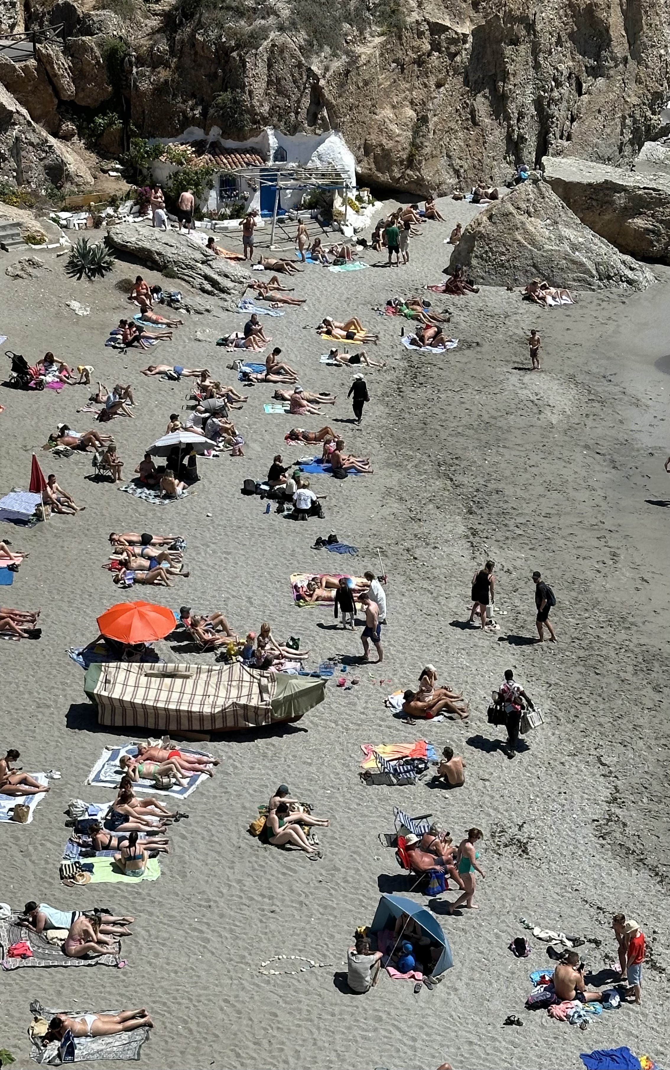그라나다에서 세비야 가는 길에 두 번째로 들린 도시는 '유럽의 발코니'라 불리는 네르하(Nerja)였다. 5월 중순인데도 지중해 해변에서 해수욕과 일광욕을 즐기는 사람들이 바글바글했다. 맑고 잔잔한 지중해를 배경으로 뜨거운 모래밭에 누워 책을 읽거나 햇볕에 온몸을 맡기고 태우는 자유를 만끽하는 여유가 부러웠다. 눈이 즐거운 풍경이다.^^