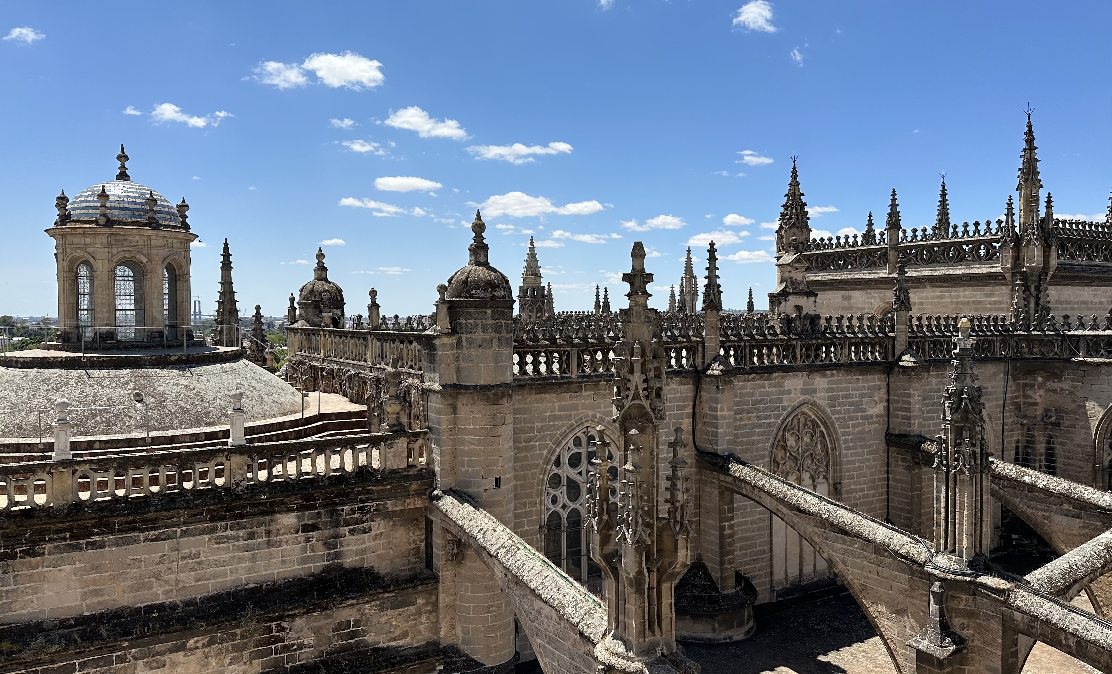 세 번째 도시 세비야에서 에어비앤비로 잡은 숙소는 대성당이 1분 거리로 2층(우리로 치면 3층) 테라스에서 바로 보였다. 물론 대성당은 바로 앞에선 시카고 100층 넘는 빌딩들처럼 전모가 파악되지 않을 정도로 크고 넓어서 테라스에서도 정가운데 문 밖엔 안 보였지만, 좌표 삼아 어디든 걸어다닐 수 있어 좋았다.