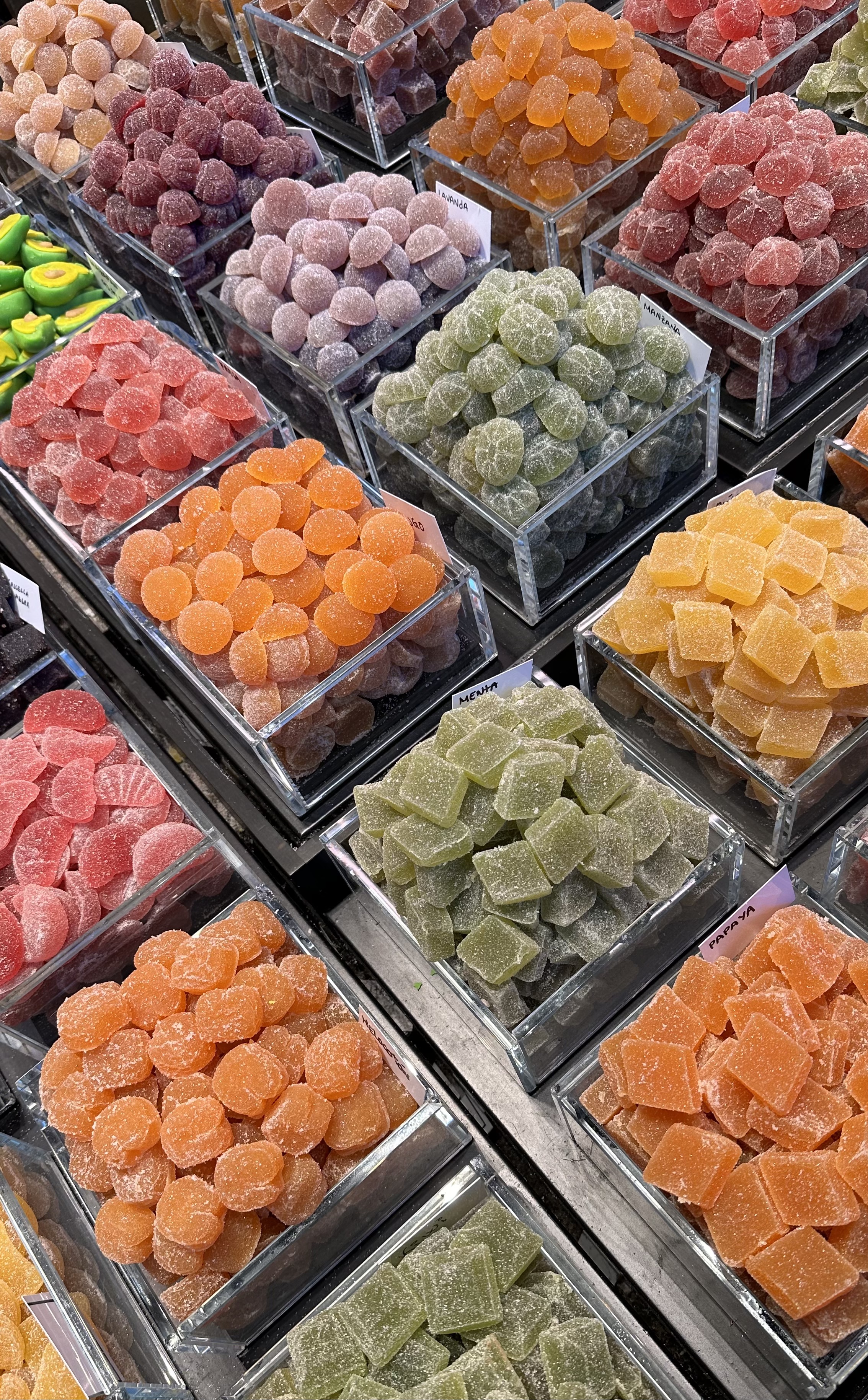 알록달록 보암직도 하고 먹음직도 한 젤리 류와 비슷해 보이면서도 다른 각종 향신료들이 먼저 눈길을 끈다. 단 걸 좋아하고, 미세한 차이를 내고 뭔가 다른 맛이라면 환장한 사람들이 사는 동네 같았다. 일일이 주목하거나 맛을 보지 않더라도 보는 것만으로도 즐거움을 안겨주었다. 지름신이 내려오려는 걸 연륜의 힘으로 간신히 참았다.