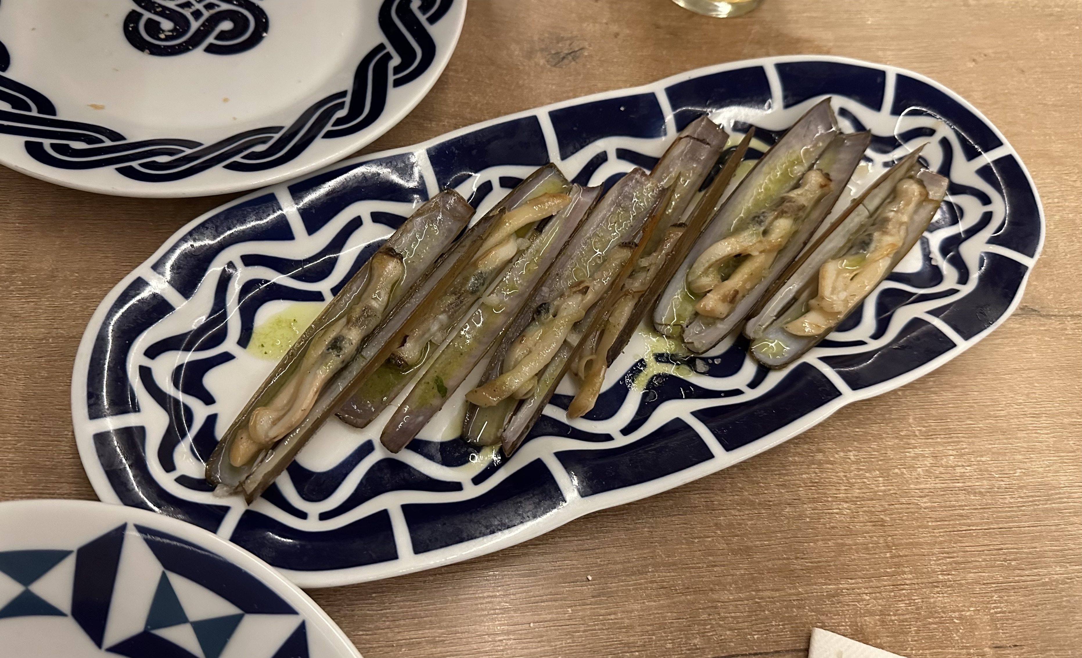 맛조개를 시켰더니 조개도 시켜보라는 웨이터의 말에 둘 다 시켰는데, 어찌 보면 촌스러운 구석이 있지만, 또 어찌 보면 튀고 개성이 강해 보이는 대범하고 화려하기까지 한 접시에 나왔다. 맛은? 미슐렝이라는 아우라 때문인지 둘 다 괜찮았다. 특히 이번에 몇 차례 먹어본 맛조개는 이 집이 가장 잘했던 것 같아 역시! 엄지 척 해 주었다.