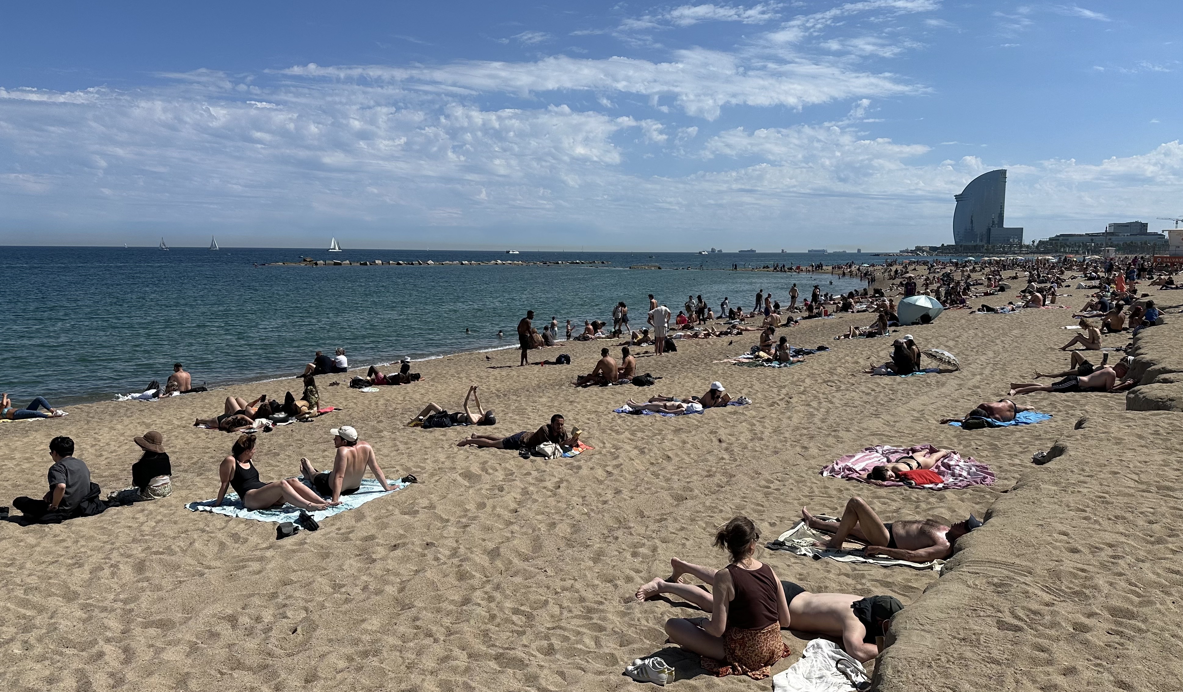 바르셀로나는 남쪽으로 지중해를 끼고 있어, 체류 사흘째 되는 주일 오전 바르셀로나 대성당에서 알아들을 순 없어도 흥미로운 스페인어 미사와 수준 높고 아름다운 성가대 찬양을 들은 다음 고딕 지구를 걷다가 네파 해변을 찾았다. 5월 중순이 막 시작될 때인데, 살짝 따가울 정도로 햇볕이 좋았고, 넓고 긴 백사장엔 해수욕과 일광욕 인파가 넘쳐났다.