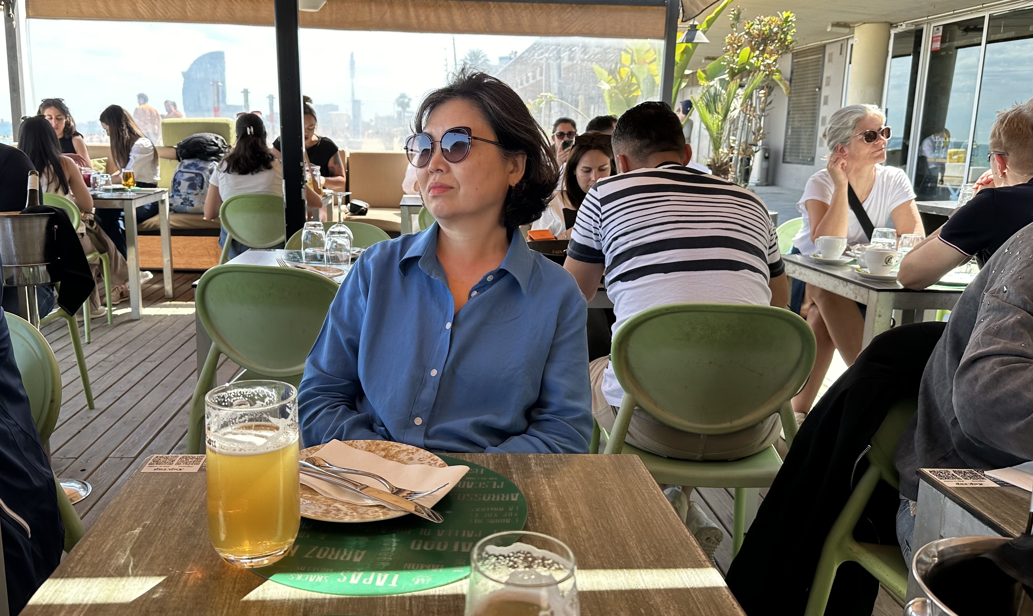 군데군데 자리 잡은 해변 카페에 빈자리가 보여 목을 축이고 간단한 피쉬 타파스로 요기를 했다. 옆 테이블엔 커피를 마시며 조곤조곤 담소를 나누는 중년 커플들도 있고, 친구끼리 왔는지 왁자지껄 흥을 나누며 커다란 먹물 빠에야를 시켜 먹는 그룹도 보였다. 스페인은 흡연에 관대하고 자유로워 길거리에서도 담배 연기를 많이 맡았는데, 바닷가라고 예외는 아니어서 오랜만에 담배 연기를 맡았다.