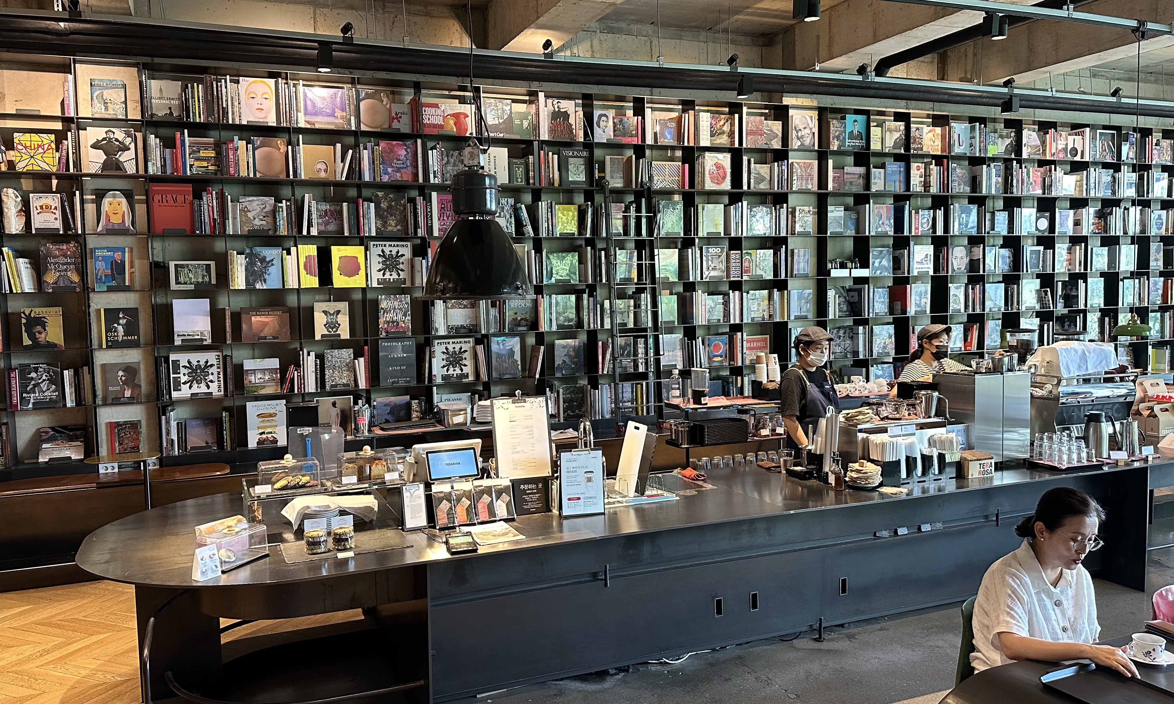 둘째날 점심을 먹고 집에 돌아오기 전에 강릉에서 마지막으로 들린 곳은 테라로사 경포호수점이었다. 테라로사는 예술 관련 큰 책자들로 매장을 둘러싸는 앤틱한 풍경으로 유명한데, 경포호수점도 예외가 아니었다. 통창 너머로 보이는 호수와 버찌가 달린 벚나무 풍경은 덤이었다.