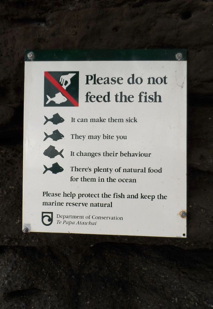 사람들이 많이 찾는 산이나 바닷가에도 이정표를 비롯해 이런저런 다양한 안내판을 볼 수 있는데, 바닥까지 훤히 비치면서 전복을 비롯해 유유히 노니는 물고기를 볼 수 있는 해변엔 자칫 기분에 도취돼 먹이를 주지 말라는 걸 네 가지 이유를 들어 설득하고 있었다. 1-2-3-4- 이런 거 좋아하는 나는 당연히 그리고 기꺼이 설득된다.