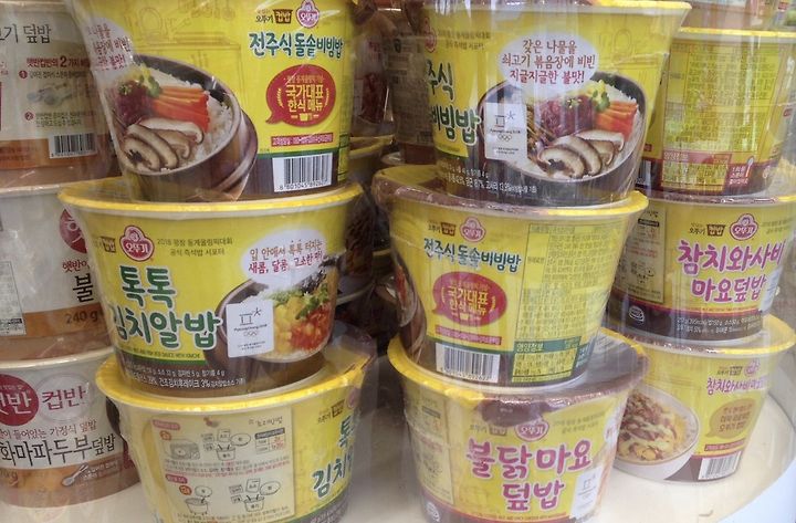 무지 많았다. 뚜껑 부분이 보이도록 진열한 컵라면류는 물론 덮밥류도 종류가 무척 다양해 촌놈