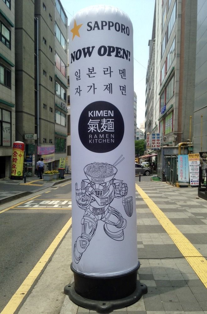 사무실에서 매일 가는 식당 1층에 작은 일본 라멘집이 하나 생겼다가 얼마 안 지나 문을 닫았다. 이름과 뜻 모두 힘찬 키멘(氣麵)이고, 무엇보다도 맛이 괜찮아 인근 계원대생들을 중심으로 식사 시간엔 다찌에 빈 자리가 없을 정도로 동네 맛집이 될 뻔 했는데, 무슨 이유에선지 몇 달 하다가 몇 달 쉬고 다시 영업을 재개했다. 친지가 보낸듯한 재개장을 축하하는 화환이 두어 개 놓여 있는데, 화환 리본에 쓰인 글귀가 눈길을 끌었다.