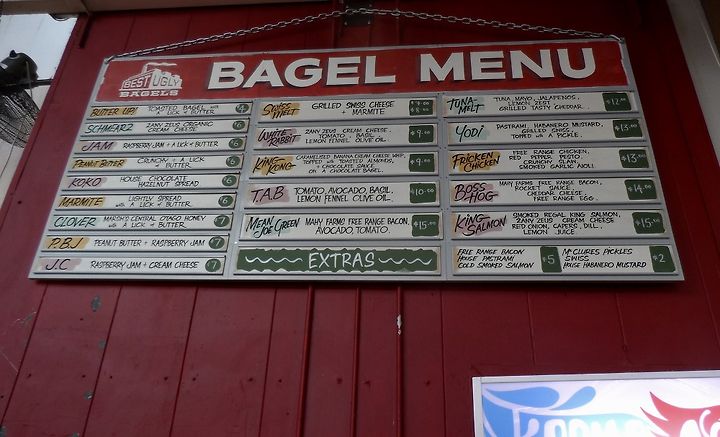 희한한 이름이다. 형용모순(oxymoron)으로 들리는 Best Ugly라니. 귀국하는 날 아침을 먹기 위해 폴과 솔이 데려간 곳은 베이글 맛집이었다. 6년 전 웰링턴을 여행할 때도 Wholly Bagel(1/29/13)이란 베이글 맛집엘 데려 가더니만, 오클랜드의 베이글 맛집도 소개하고 싶었던 모양이다. 외관은 뉴질랜드의 카페들이 대개 그러하듯이 별로 꾸미지 않아 수수한 인상을 주었는데, yelp와 론리 플래닛 등이 추천한 집이란 스티커들이 신뢰감을 주었다.