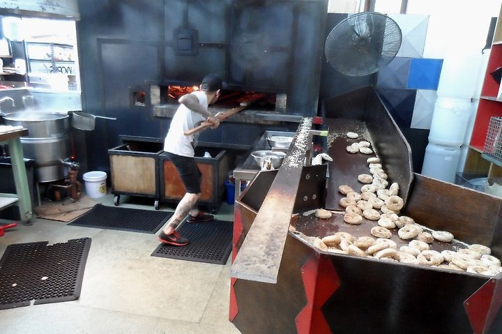 넓고 층고가 높은 주방 안엔 가운데에 커다란 반죽용 테이블이 놓여 있고, 각자 맡은 역할에 충실한 직원들의 손놀림이 빠르게 이어지고 있었다. 여기서 만들어지는 다양하고 맛있는 베이글은 다른 카페들로도 많이 나간다고 하는데, 공항에서도 이 카페를 볼 수 있었다. 찍을 땐 몰랐는데, 이것저것 사진을 찍는 나를 위해 매니저인듯한 이가 잠시 작업을 쉬고 V자로 포즈를 취해 주었다.