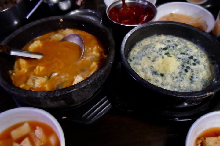 다른 데선 따로 값을 받는 달걀찜도 딱히 특별하진 않지만 없었다면 서운할 뻔한 조합으로, 웬만한 반찬 하나를 대신해 주는 푸짐한 양이다(이게 없었으면 된장찌개가 아무리 맛잇어도 8천원 받긴 어려웠을 것이다). 된장 찌개는 맵진 않지만 제법 간간해 뜨끈하고 물컹한 달걀찜을 곁들여 먹으면 환상의 조합을 이룬다. 두부 찌개집인데 두부 조림이 찬으로 나오는 것도 재미 있고, 물김치도 맛이 괜찮다.