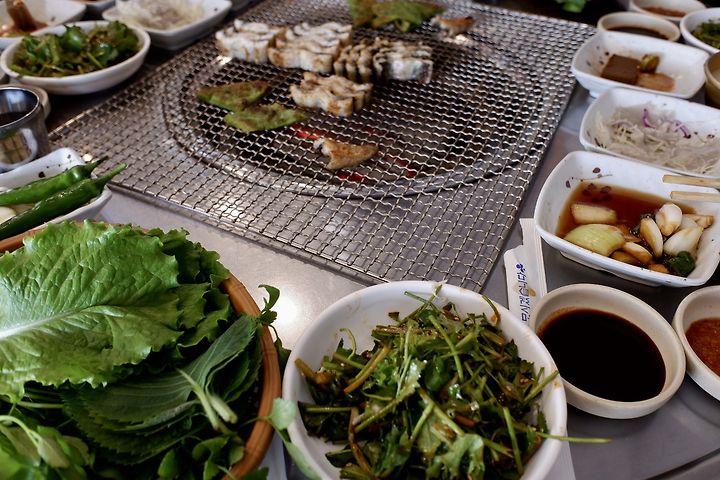 참숯불에 노릇노릇 구워진 장어는 아무 냄새도 안 나고 부드러운 게 끝없이 들어갔다. 장어의 맛을 돋궈주는 숨은 조력자는 오랫만에 보는 돌미나리였다. 거칠지 않으면서 향이 좋아 장어맛을 제대로 살려주었다. 야채를 비롯해 반찬은 셀프로 리필해 먹을 수 있었는데, 메인이 훌륭하니 야채 외엔 손이 안 가 더 가져올 필요가 없었다. 장어는 손질한 것을 고기처럼 무게대로 받아 실속이 있었다. 다음에 가족식사를 할 집으로 찜해 두었다.