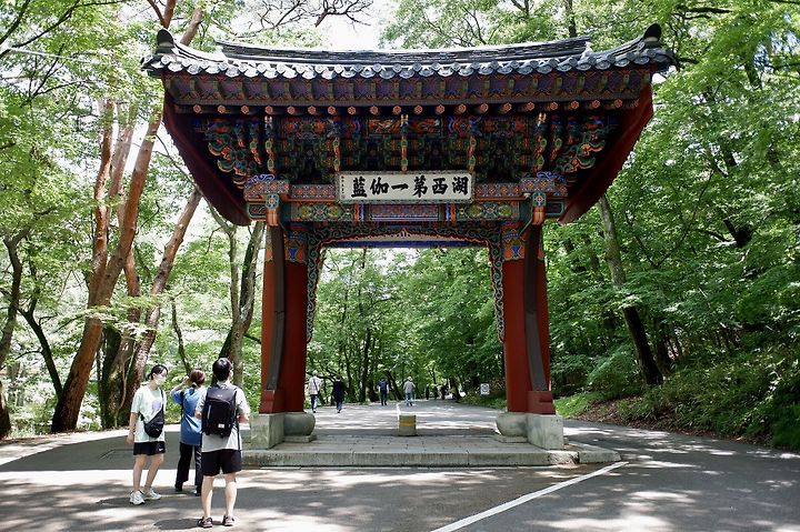 충청도를 일컫는 호서 지방에서 제일 가는 가람(산사)이라 써 놓은 일주문을 지나 법주사 옆으로 옛날 조선조 세조 임금이 다녀갔다는 데서 이름이 붙은 아름다운 산길이 우리를 기다리고 있었다. 주차장에서부터 한 시간 정도 걷는 숲길이었는데, 계곡을 끼고 있어 풍경이 근사했다. 아름드리 소나무를 비롯해 전나무, 층층나무, 서어나무 등 우람한 나무들 사이로 난 길은 숲 냄새부터 도시에서 온 우리를 반겨주었다.