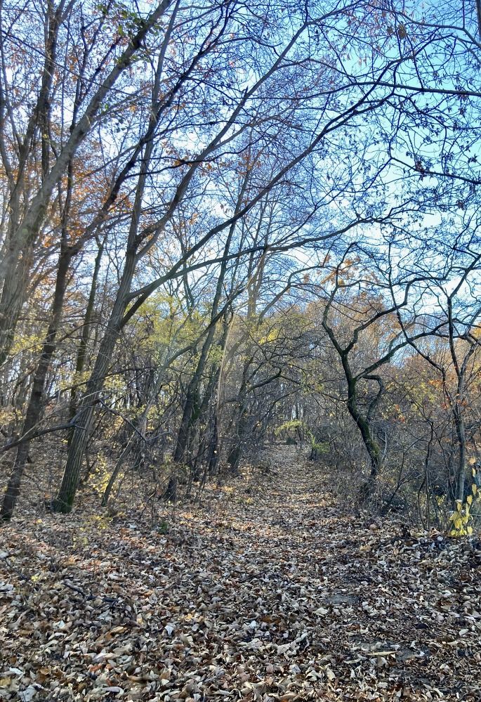 발목까지 잠길 정도로 푹 쌓인 낙엽들은 쿠션과 함께 사운드까지 제공하는데, 등산로가 잘 닦인 산길과는 또 다른 걷는 재미를 선사한다. 골짜기처럼 가운데가 움푹 파인 데는 구르던 낙엽들이 더 이상 갈 데 없어 쌓이고 또 쌓이면서 어떤 데는 종아리까지 차기도 한다. 이럴 때 요긴한 게 등산 스틱인데, 익숙한 길이어서 나는 작은 배낭만 매고 오르지만, 초행길엔 스틱이 있으면 편하다.