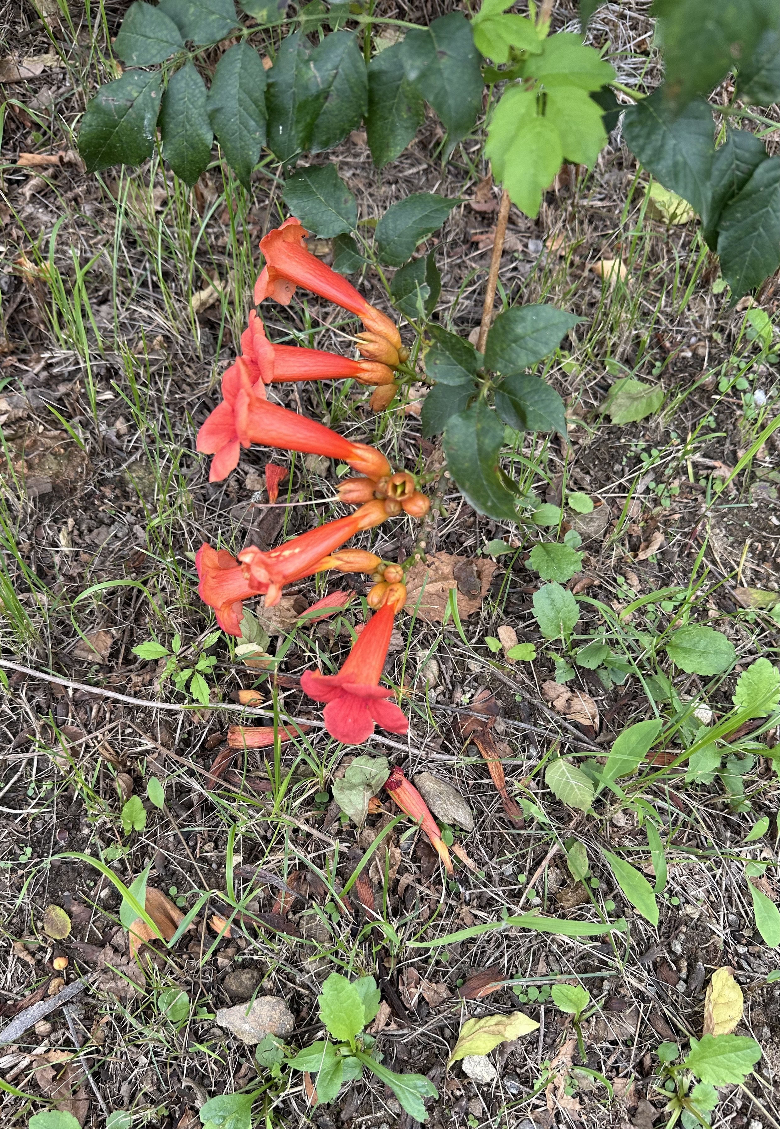 요즘 능소화는 거의 끝물인데, 나무고아원 능소화도 마지막 남은 꽃이 거의 땅바닥까지 늘어져 있었다. 아이들이 많이 오는 공원인 줄 알고 아이들이 꽃 관찰을 쉽게 하라고 이렇게 늘어지게 핀 건지 모르겠지만, 특유의 나팔처럼 생긴 주홍색 꽃들이 참 보기 좋게 마지막을 장식하고 있었다.