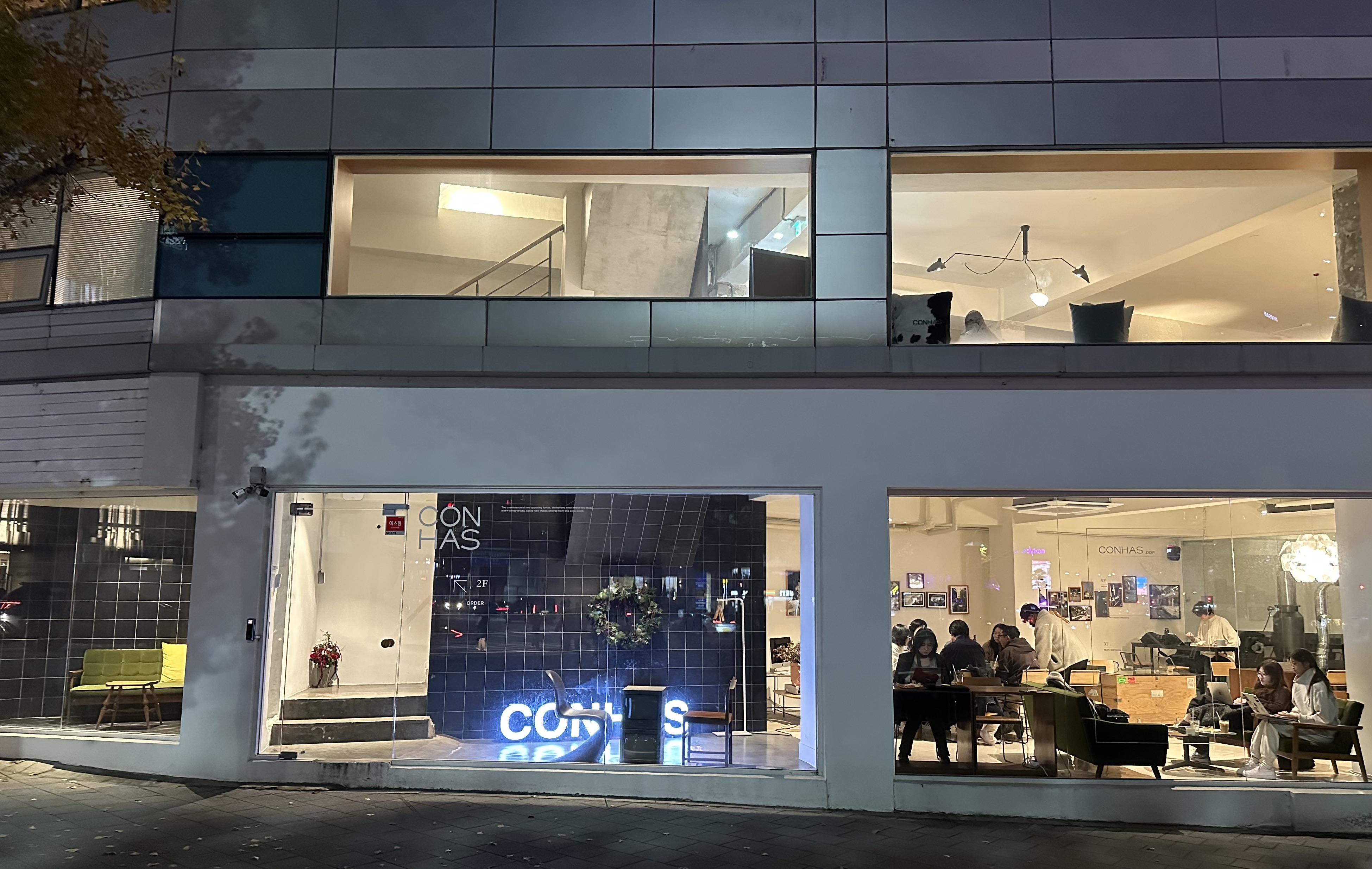 동대문역에서 장충동-남산 가는 을지로 코너에 4층을 다 쓰는 카페 콘하스(CONHAS)가 있다. 연남동을 비롯해 몇 군데 있다는데, 주일에 교회 오갈 때마다 건너편 길목에 성업 중이어서, 어떻게 생겼길래 몇 층을 다 쓰는 건지 궁금하곤 했다. 지난주에 DDP에서 바스키야 전(11/26/25)을 보고, 저녁은 별 생각이 없어 커피와 조각 케이크를 시키고 음악회 전에 한 시간 정도 보낼 요량으로 들어갔다.